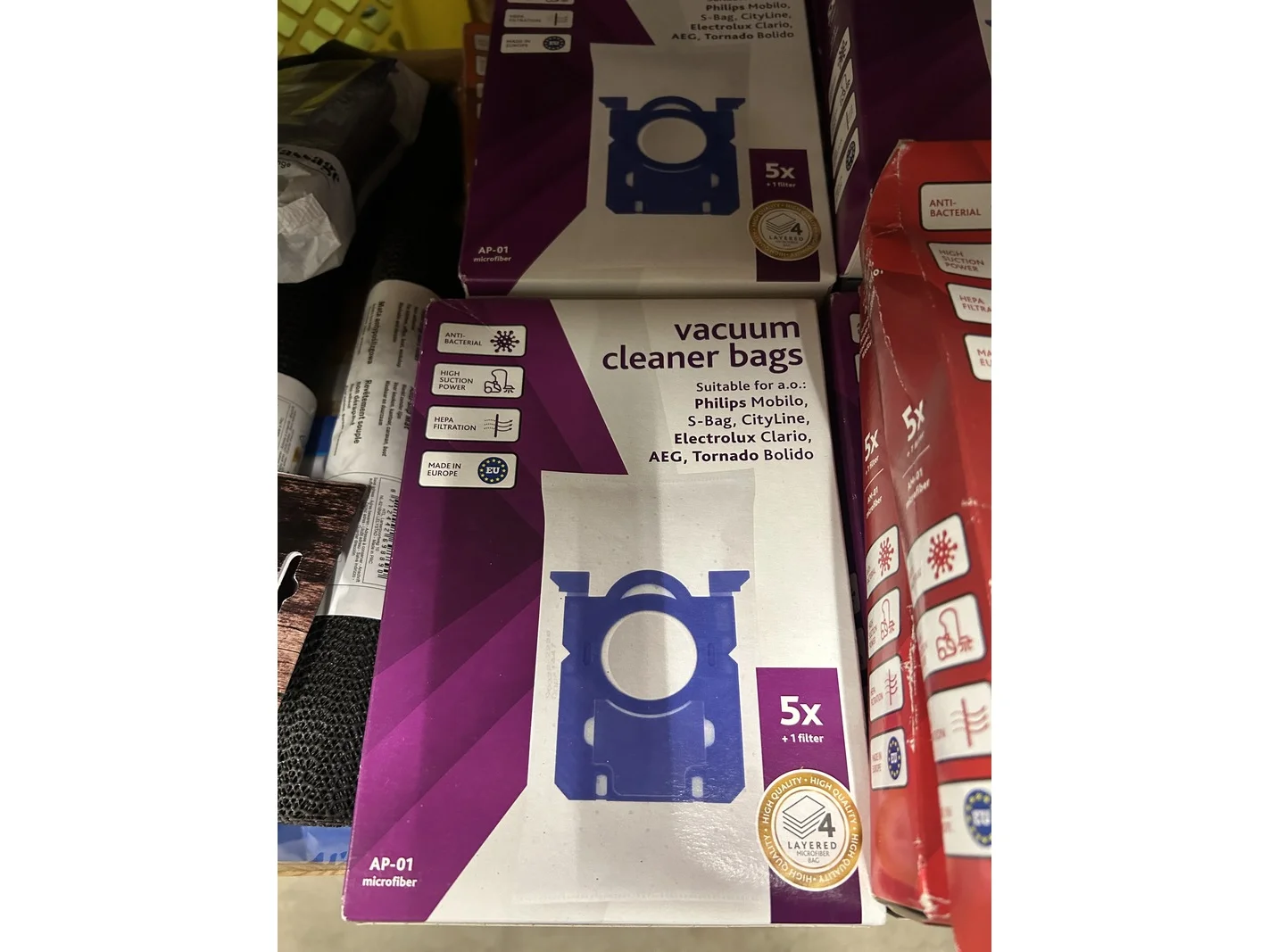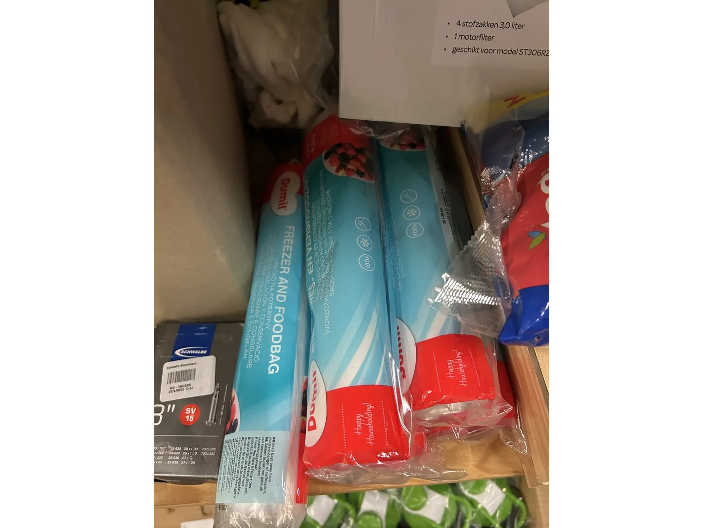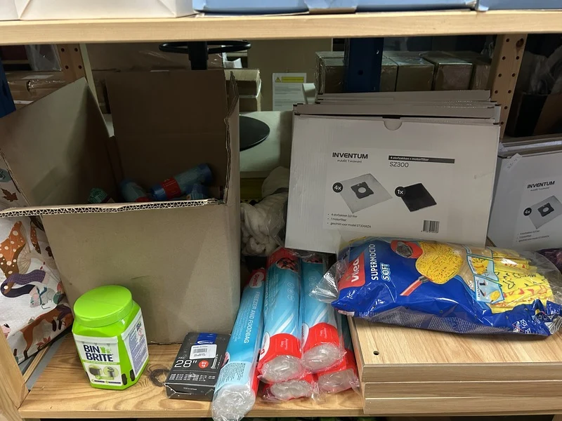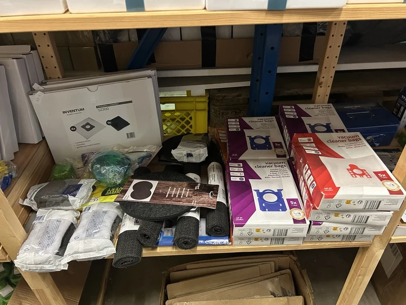 Merk: w.o. Inventum, Vileda Product: Stellingvak (online) winkelvoorraad w.o. stofzuigerzakken, afvalzakken Conditie: nieuw