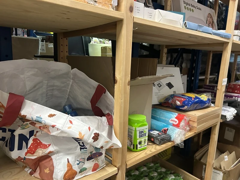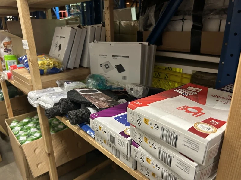 2x stellingvak (online) winkelvoorraad w.o. stofzuigerzakken, afvalzakken w.o. inventum, vileda