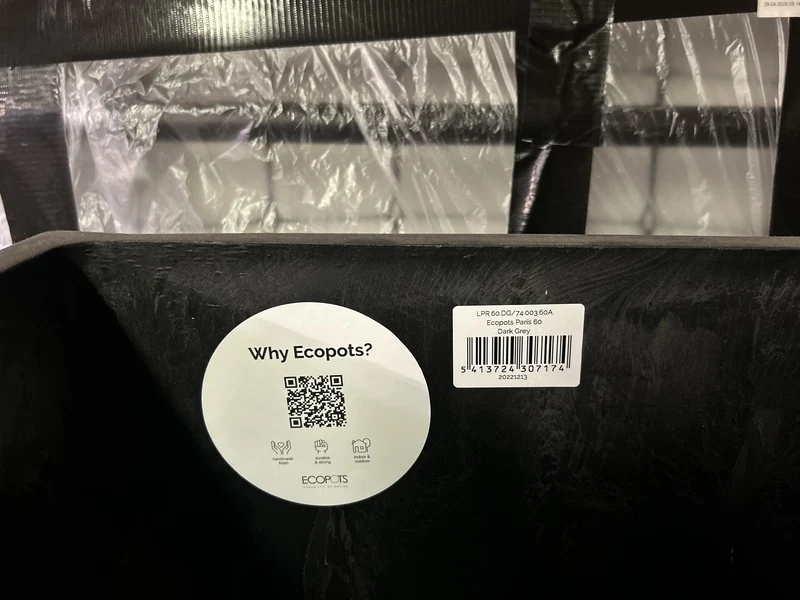 Merk: Ecopots Product: Bloembak 60x26x40 Kleur: antraciet Specificaties: Showroom modellen.