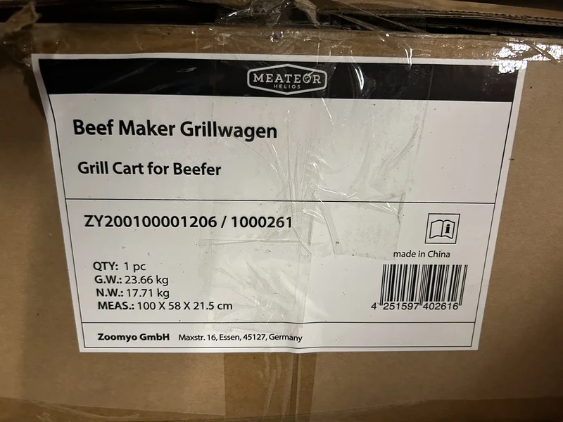 Merk: Meateor Product: Beef maker grillwagen Conditie: nieuw Specificaties: Verpakking beschadigd. Let op! Alleen grillwagen voor beef maker.
