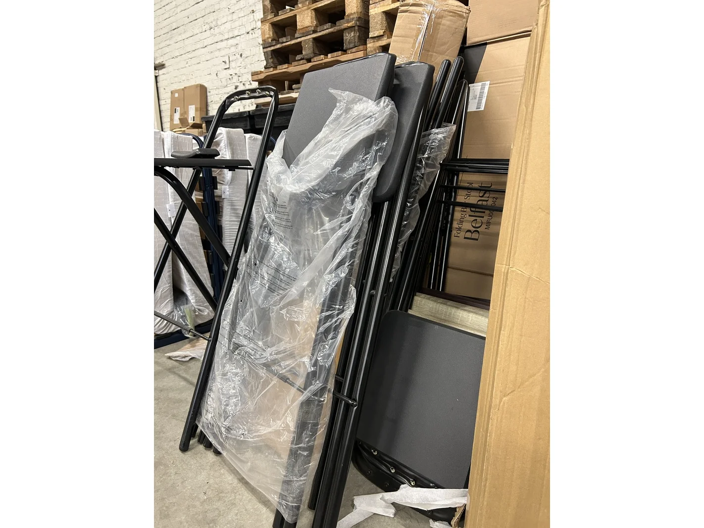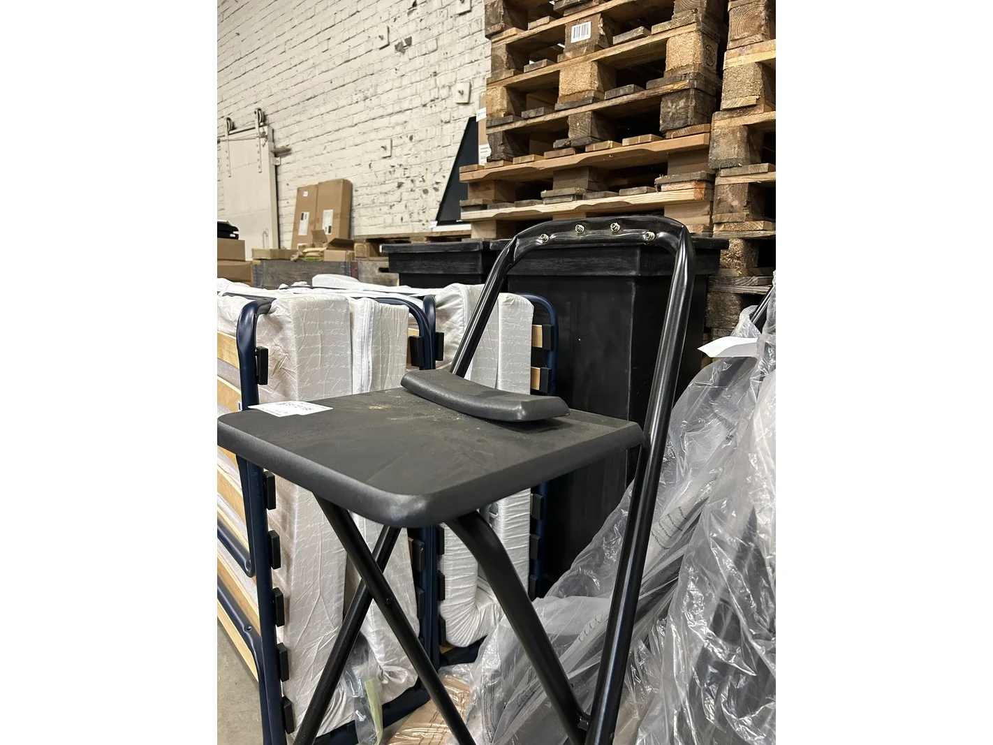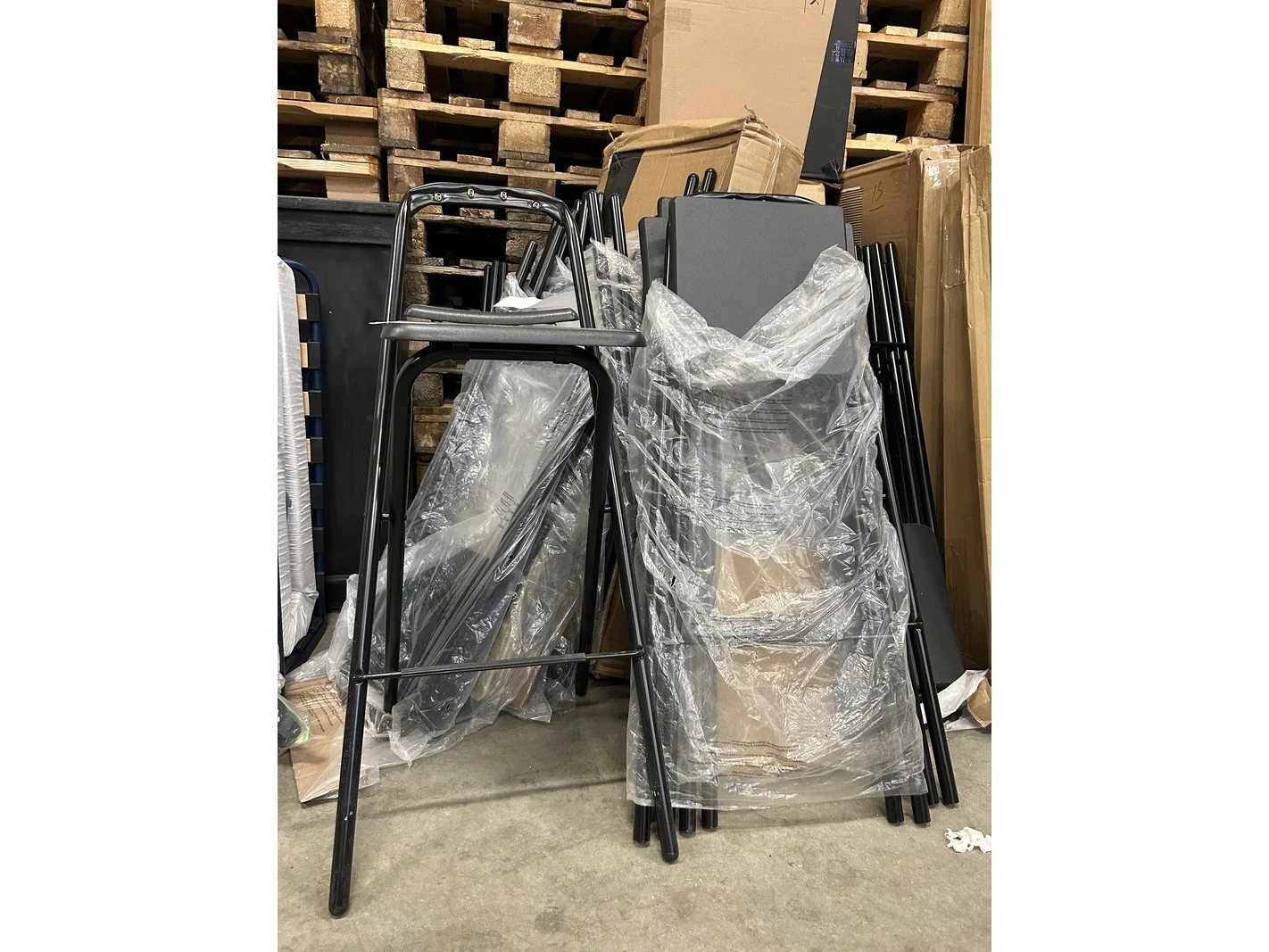 Merk: Milton & Oldbrook Product: Inklapbare barkruk Specificaties: Nieuw en demo modellen. Een aantal barkrukken zijn beschadigd en zitten rugleuningen los of ontbreken.
