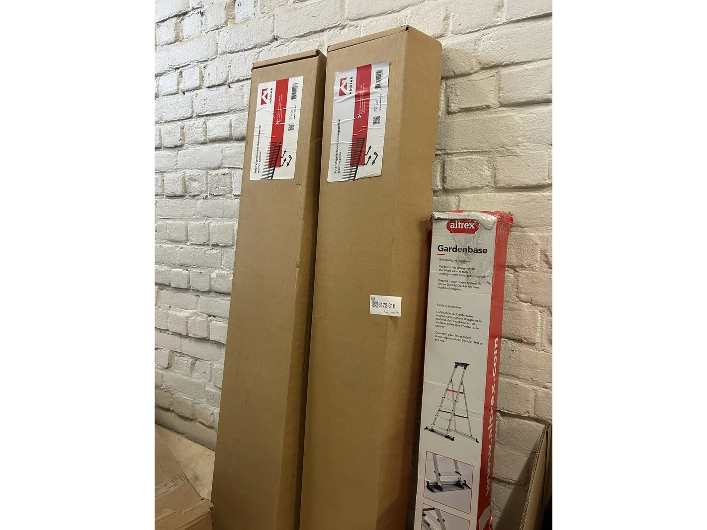 Merk: Ubbink Product: Altrex gardenbase voor trap, 2x Ubbink solar vogelschroot Conditie: nieuw Specificaties: Verpakking beschadigd.