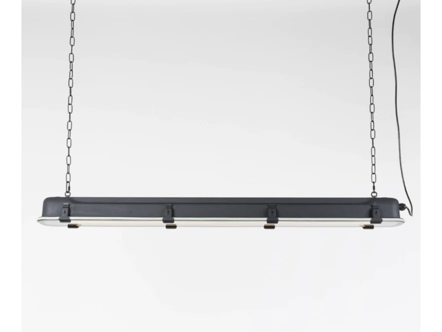 Merk: Zuiver Product: Hanglamp XL Zwart Conditie: nieuw Specificaties: De G.T.A. hanglamp is de perfecte mix tussen een industrieel design en een vintage pooltafel-lamp. Omdat G.T.A. hangt aan metalen kettingen is hij gemakkelijk in hoogte te verstellen. We gaven hem een extra Zuiver-twist door een gazen bescherming voor het glas toe te voegen en een folie dat het licht mooi filtert.