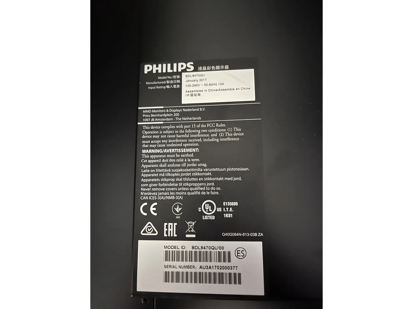 Merk: Philips Product: U-Line UHD display 84 inch Conditie: gebruikt Specificaties: Zonder afstandsbediening. Ervaar uw content op een totaal nieuwe manier dankzij vier keer de resolutie van een traditioneel scherm. Het ultragrote scherm van 84 inch met 3840 x 2160 pixels geeft het beeld zo verfijnd en realistisch weer dat het wel een venster naar een nieuwe wereld lijkt te zijn. Flexibeler worden met hoe u uw scherm gebruikt, dankzij de mogelijkheid om inhoud van maximaal vier aparte ingangen af te spelen, allemaal op één scherm. QuadViewer is ideaal voor controlekamers, bedrijfsomgevingen en vergaderruimten.