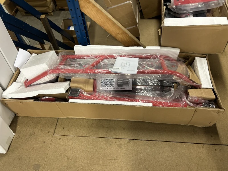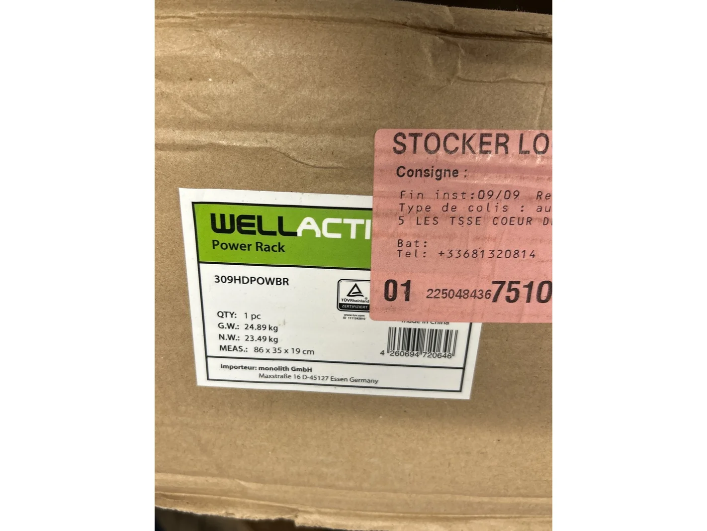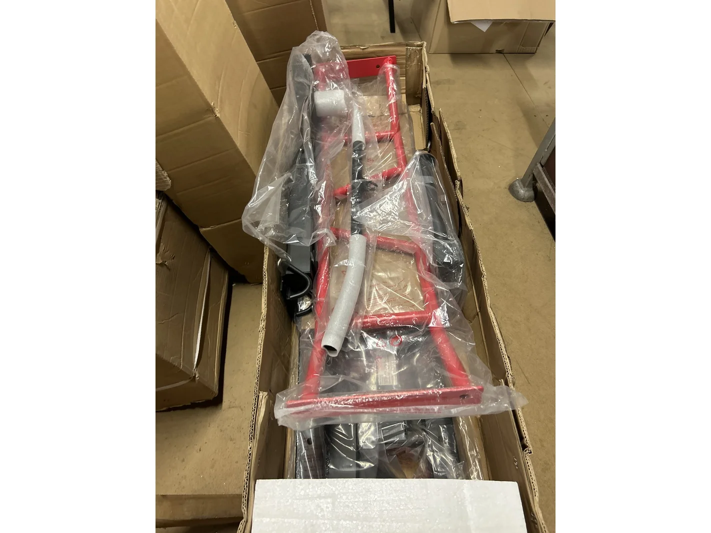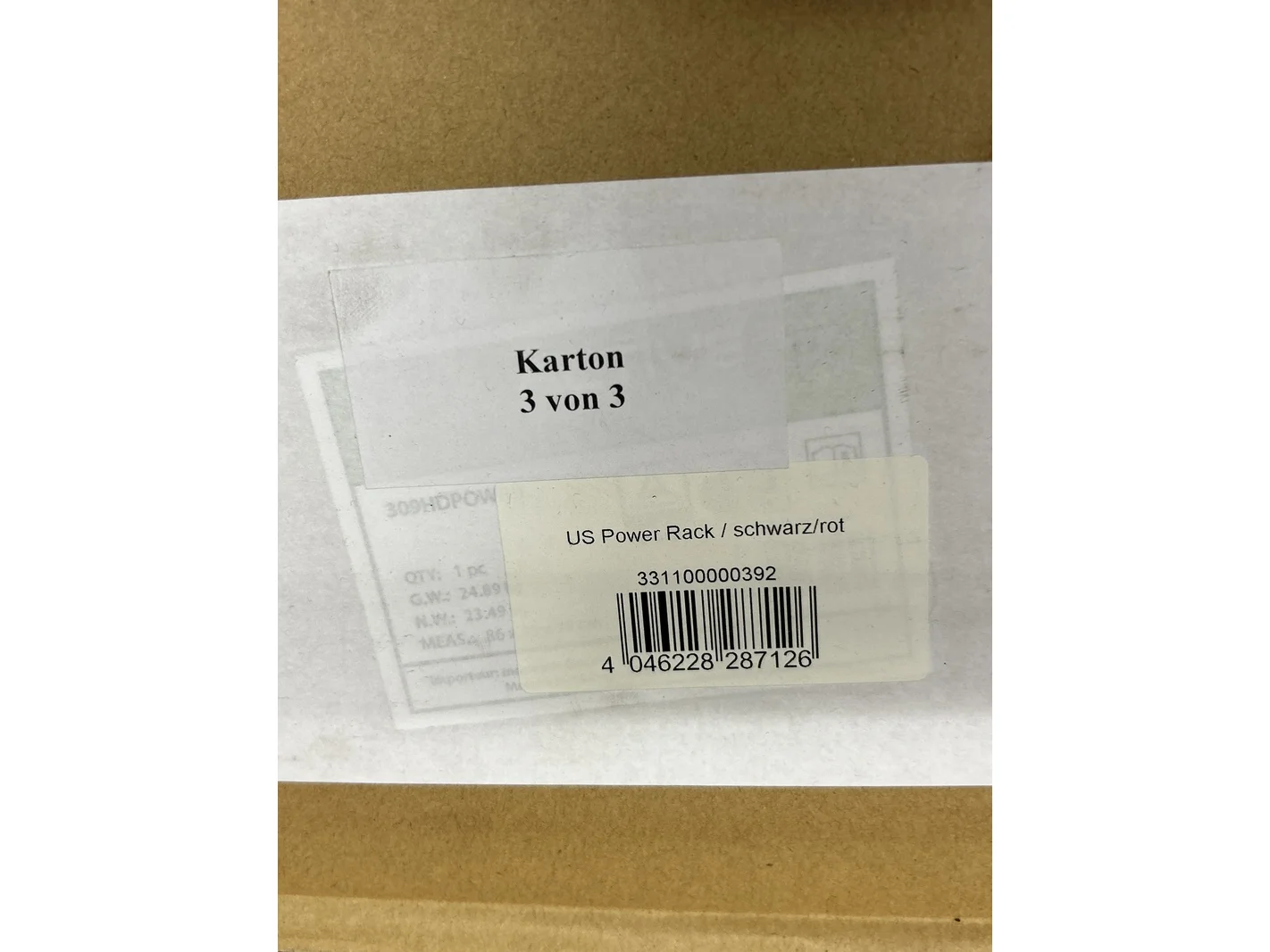 Product: Fitness powerack Kleur: zwart/rood Afmeting: 86x35x19 cm Conditie: nieuw Specificaties: Niet compleet.