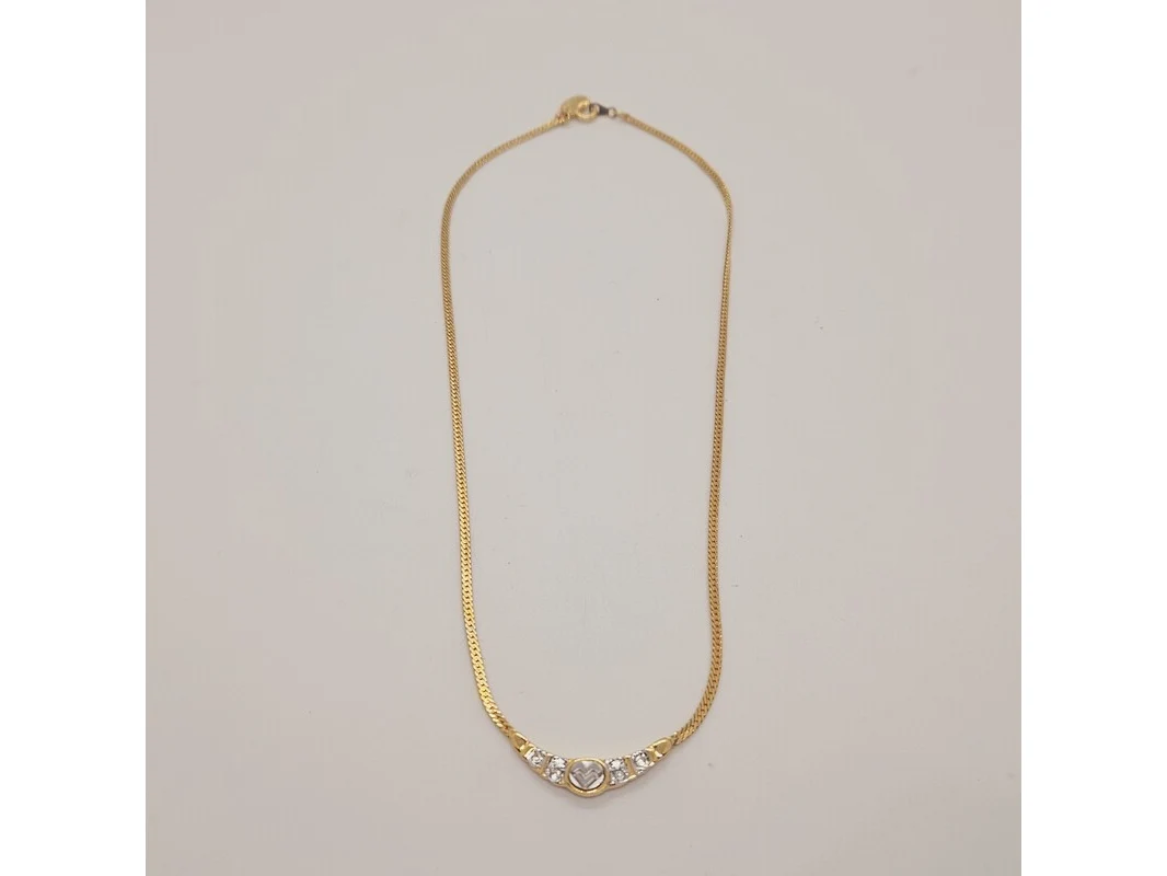 Product: Mario Valentino goldplated collier met steentjes Specificaties: Nieuw uit oude voorraad. 40cm totale lengte inclusief sluiting.