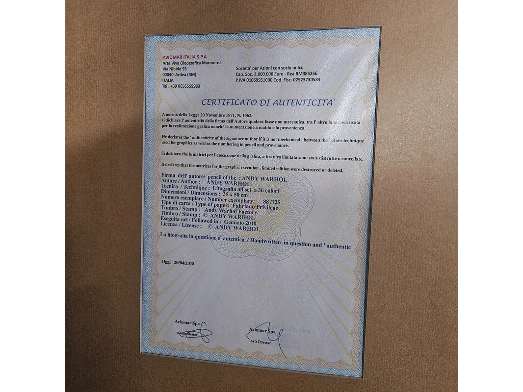 Product: Andy Warhol lithograaf - ''John Lennon'' - In nieuwe lijst Afmeting: 63cm x 48cm Conditie: Nieuw Specificaties: Limited edition 88/125 Uitgever Aviomar Italia Spa, wordt geleverd in nieuw zwart frame.