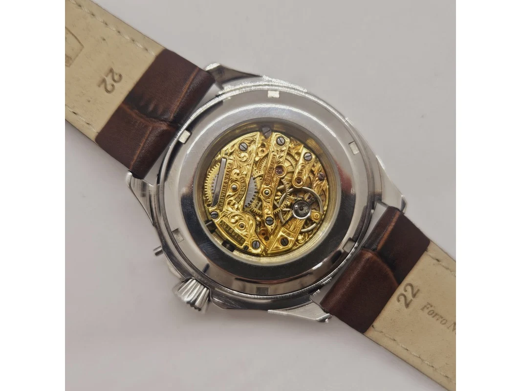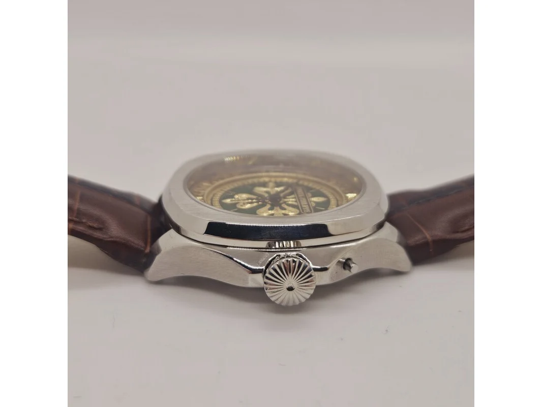 Product: Herenhorloge - Antiek Patek Phillipe uurwerk - Horologisch kunstwerk Afmeting: 42mm Conditie: Gebruikt Specificaties: Heren polshorloge dat een antiek Patek Phillipe-uurwerk combineert met een kast, wijzerplaat en band die nieuw zijn vervaardigd. De kast, wijzerplaat, en band zijn niet van het merk Patek Phillipe. Het Patek Phillipe uurwerk is afkomstig uit een origineel antiek zakhorloge met serienummer: 159105 Dit betreft een volledig functioneel horloge - gereviseerd en geserviced. Horologisch kunstwerk. Antieke horloges / horloge delen die gereviseerd, zijn of nieuwe onderdelen bevatten (bijv. kast, horlogeband) komen niet in aanmerking voor certificatie bij een horlogemaker of AD. Antieke horloges verwijzen over het algemeen naar horloges die vóór 1960 zijn gemaakt. Gezien hun leeftijd en ouderdom is een hoge mate van precisie niet te verwachten. Niet alle onderdelen zijn origineel van de fabrikant; sommige zijn mogelijk vervangen. Bied niet als u op zoek bent naar een perfect product zoals een modern horloge, of als u originaliteit belangrijk vind. Het is moeilijk om de geschiedenis van revisies, renovaties, reparaties en vervangingen van onderdelen te achterhalen.