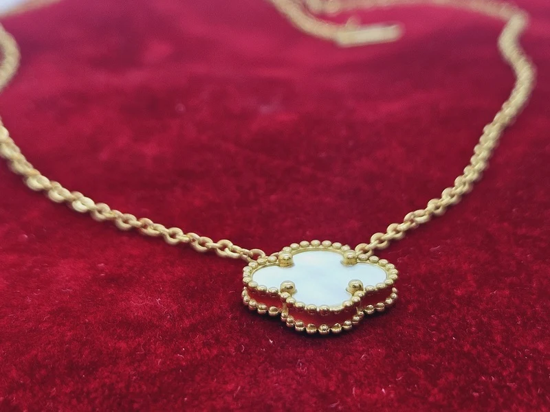 18kt goldplated juweliersketting met alhambra parelmoer pendant