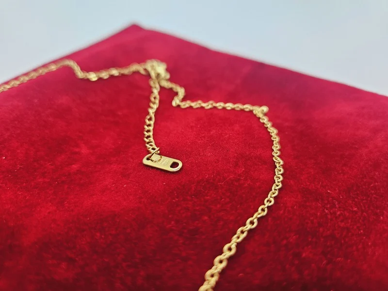 Product: 18kt goldplated juweliersketting met Alhambra parelmoer pendant Conditie: Nieuw Specificaties: Goldplated, uit oude voorraad.