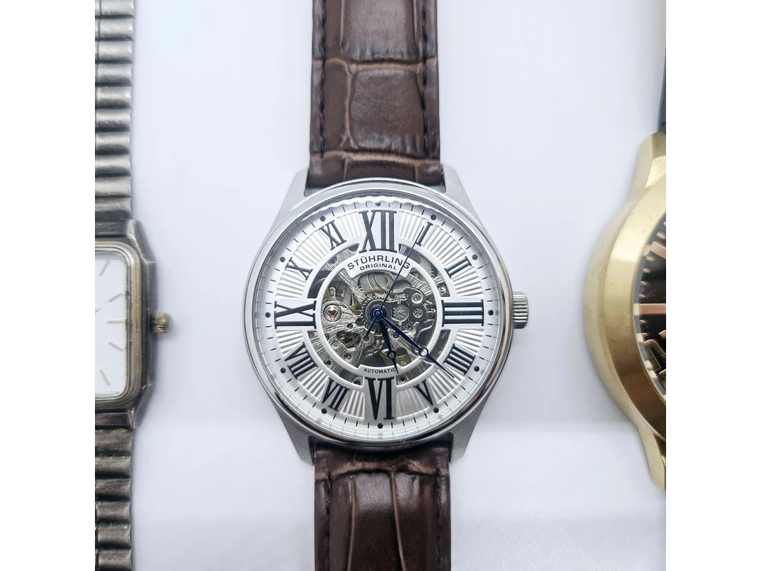 Product: Collectie horloges Conditie: Gebruikt Specificaties: Deze partij wordt verkocht in de huidige staat ('as is'), als een ongecontroleerde partij voor de hobbyist. De authenticiteit van de merkhorloges in deze partij is niet geverifieerd en wordt niet gegarandeerd.