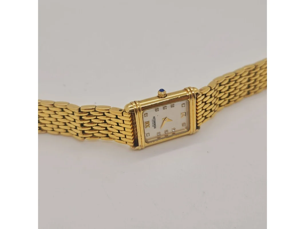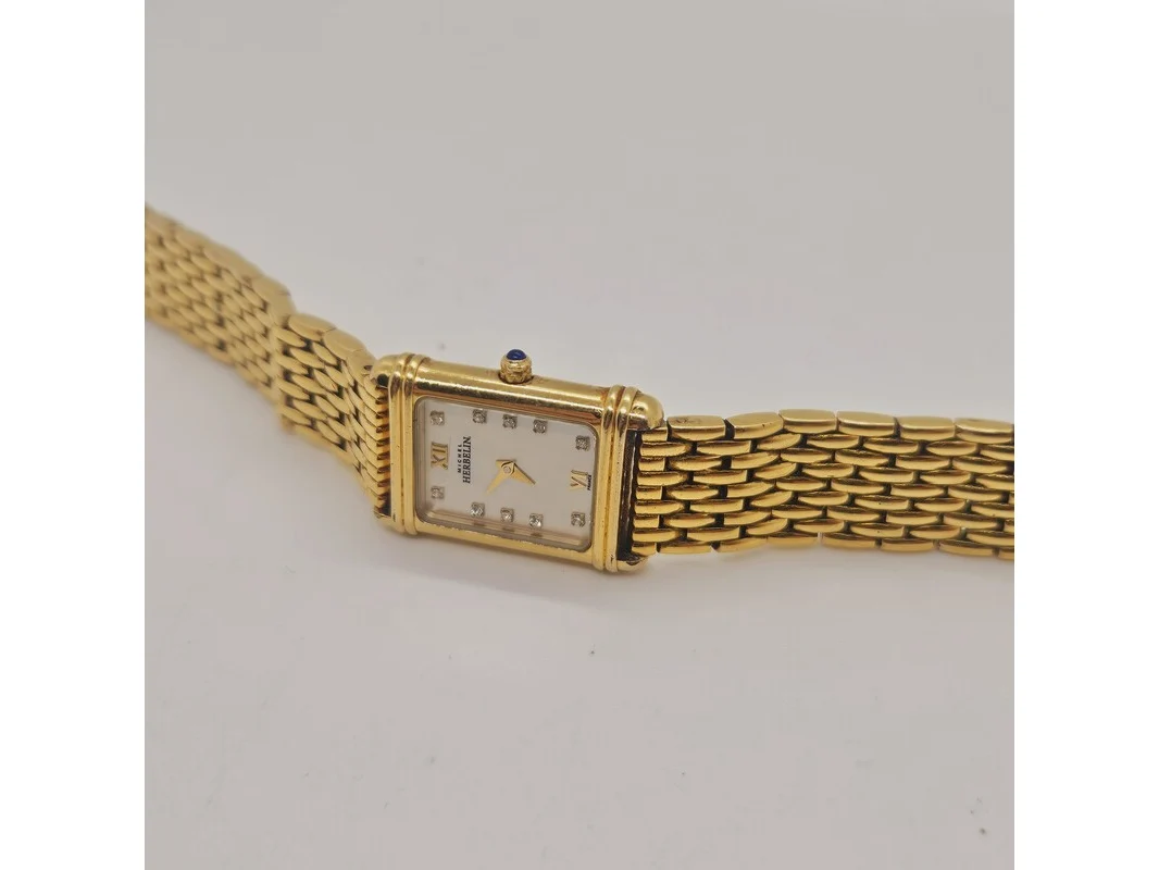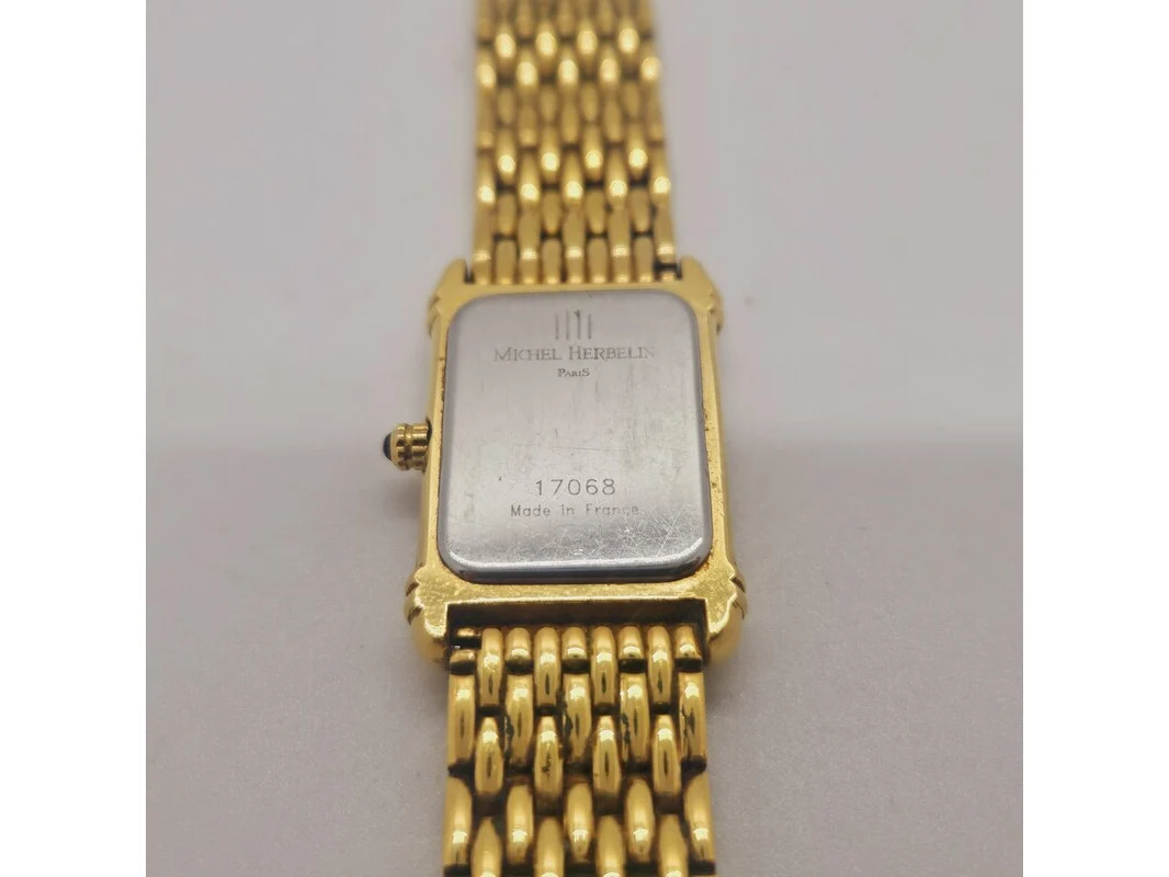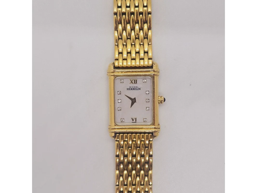 Michel herbelin goldplated tankhorloge met diamanten en parelmoer