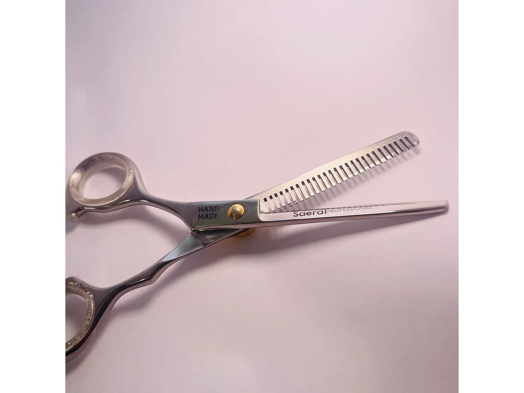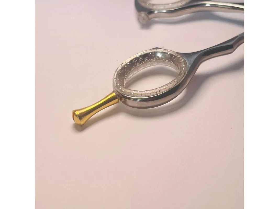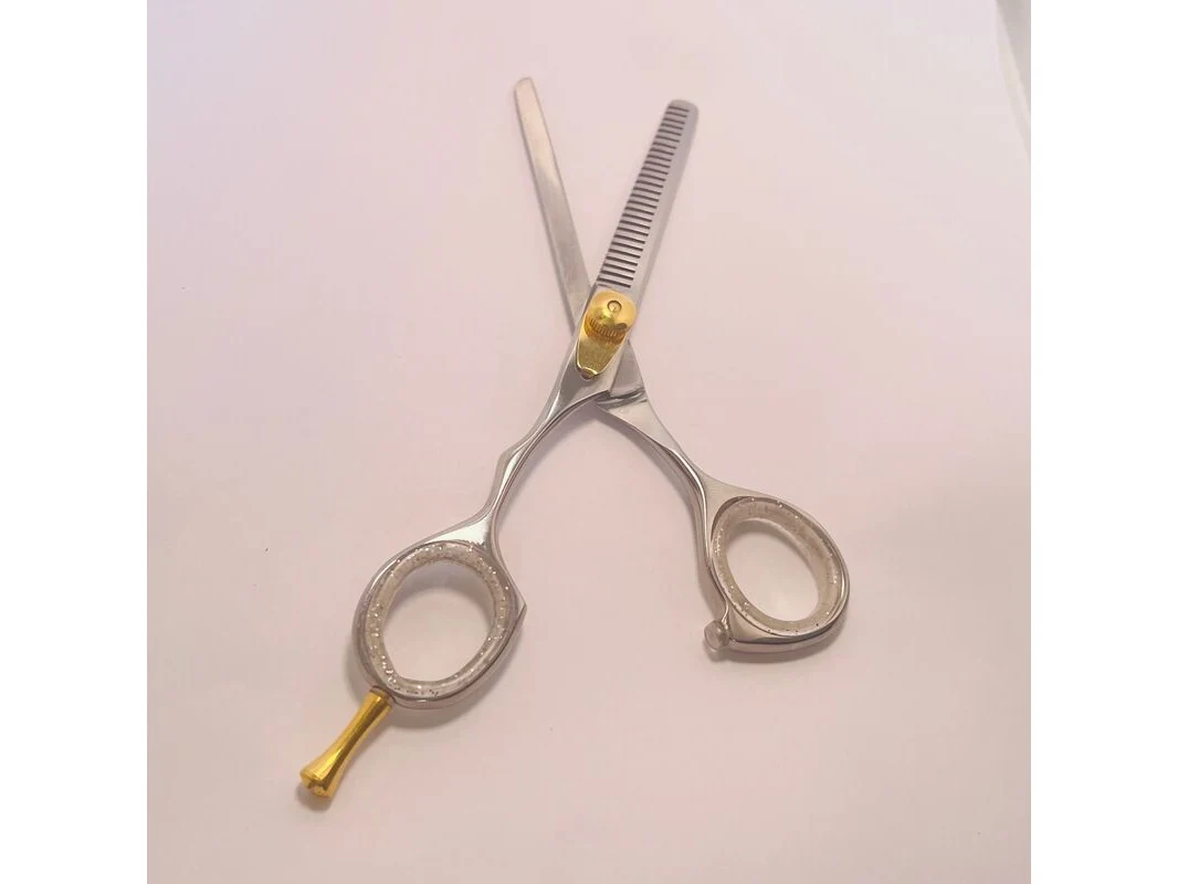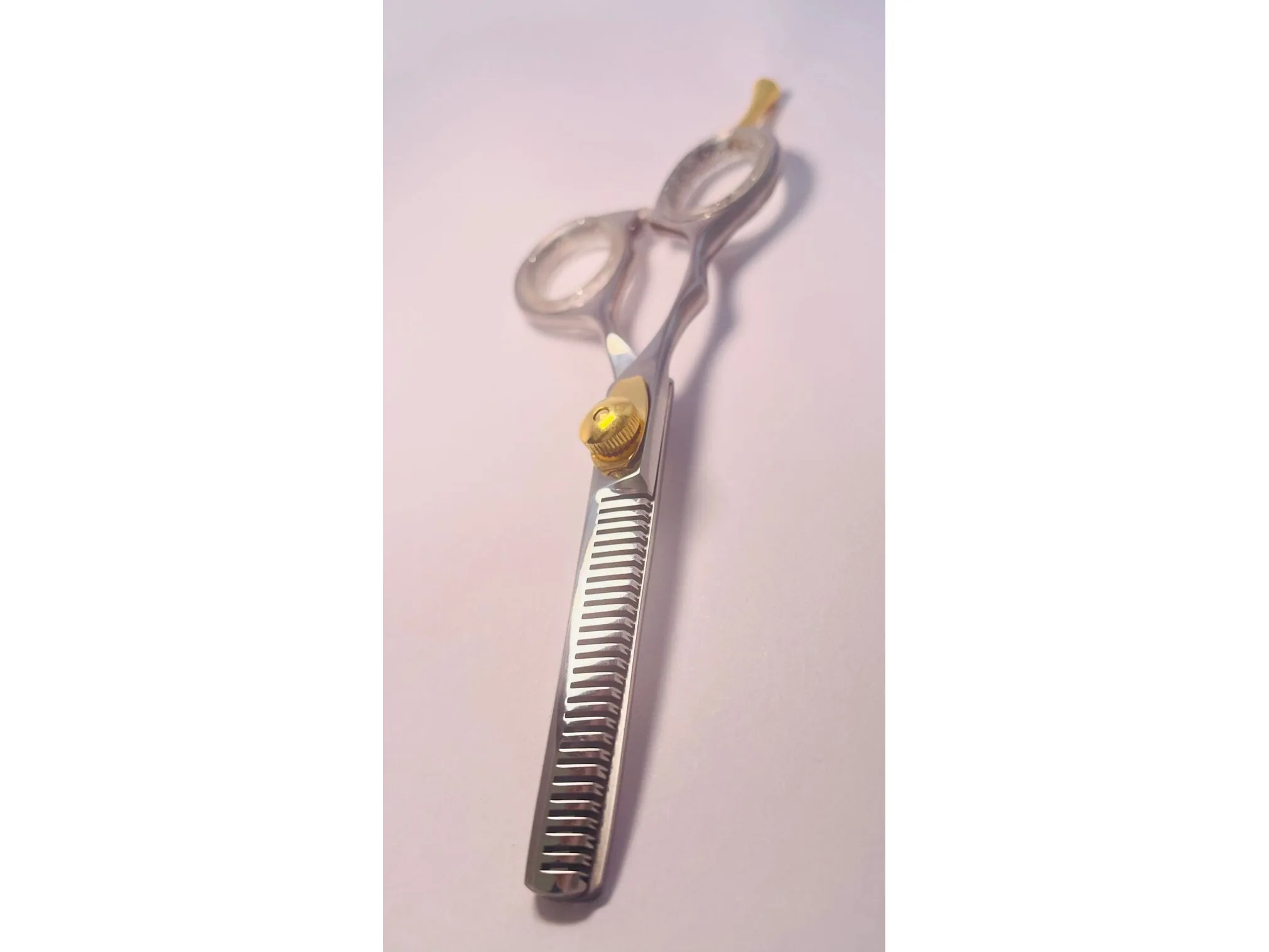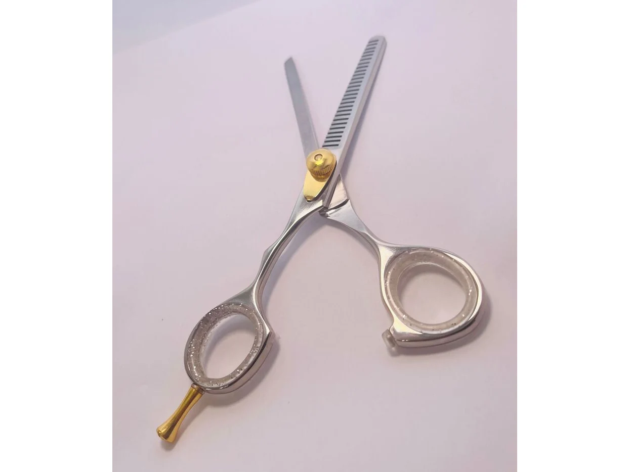 Product: Gouden kappersschaar 14kt goldplated Conditie: Nieuw Specificaties: Handgemaakt Japans staal model searal.