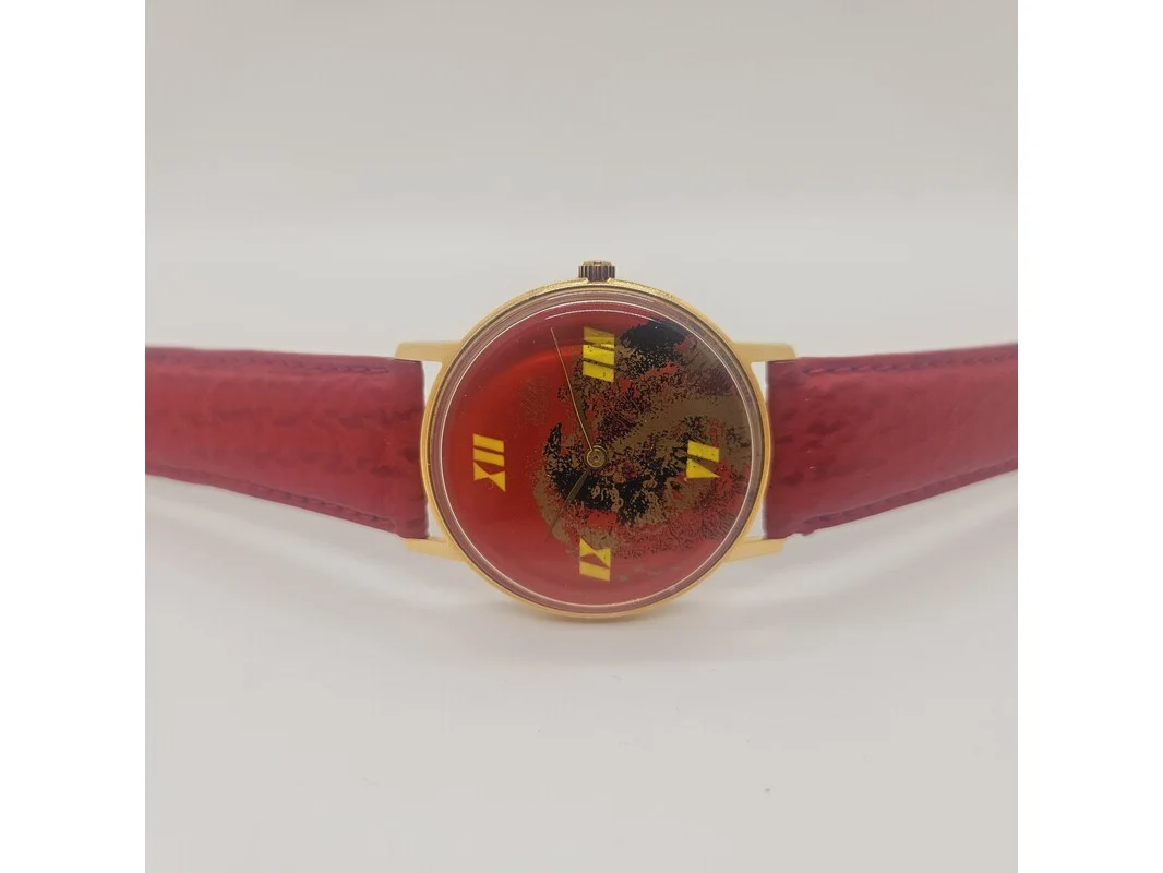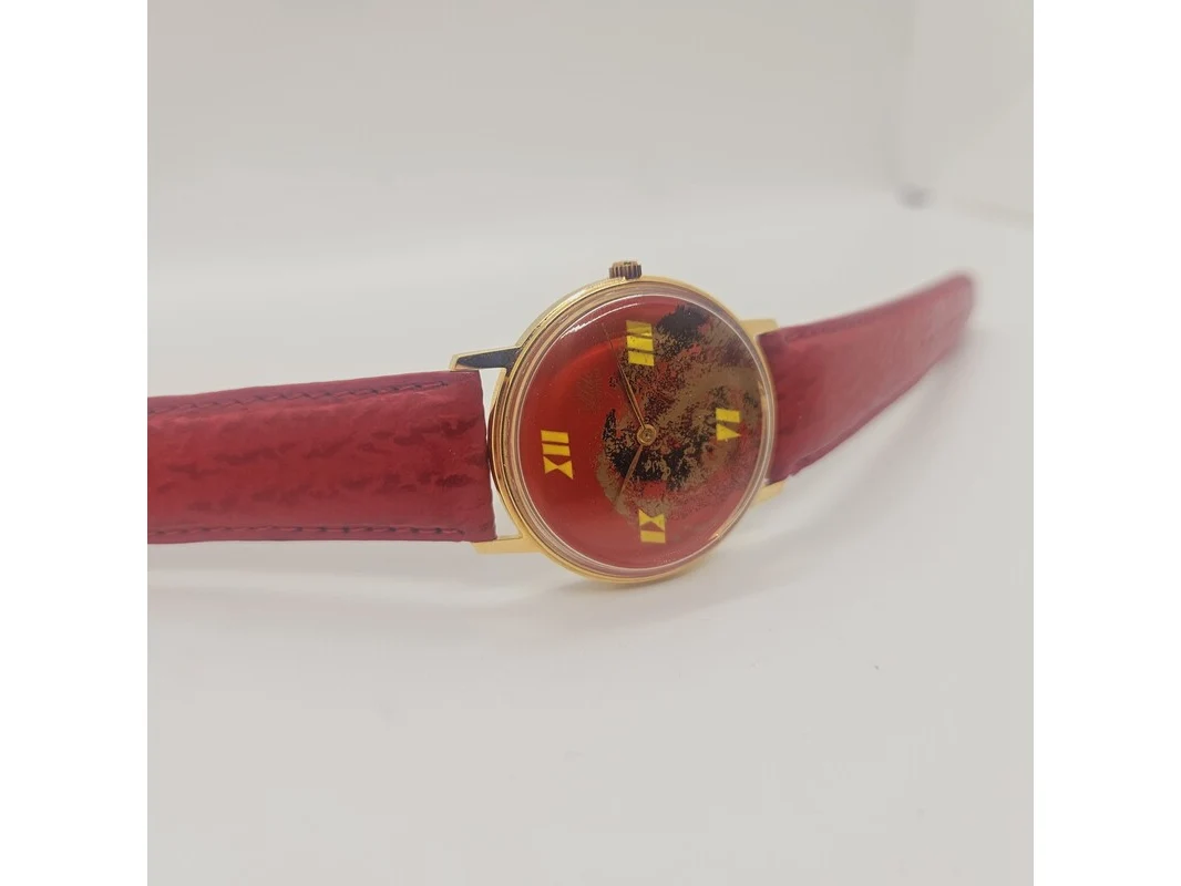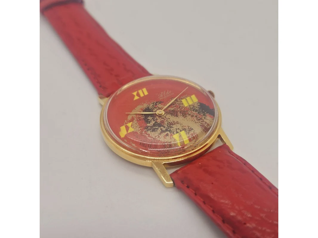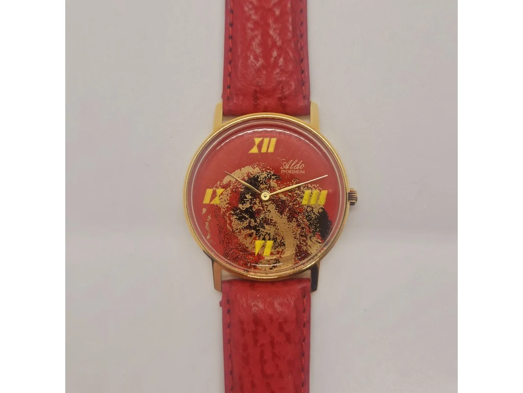 Product: Alfons Dollar Pforzheim horloge met handgeverfde wijzerplaat Afmeting: 34mm Specificaties: Nieuw uit oude voorraad. Op band van haaienleer. Kan een nieuwe batterij gebruiken.