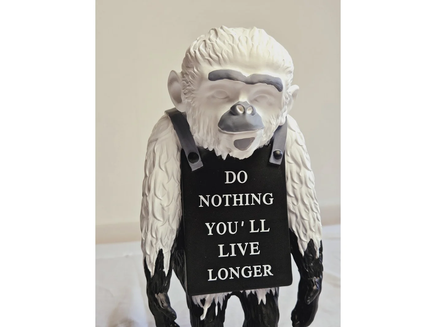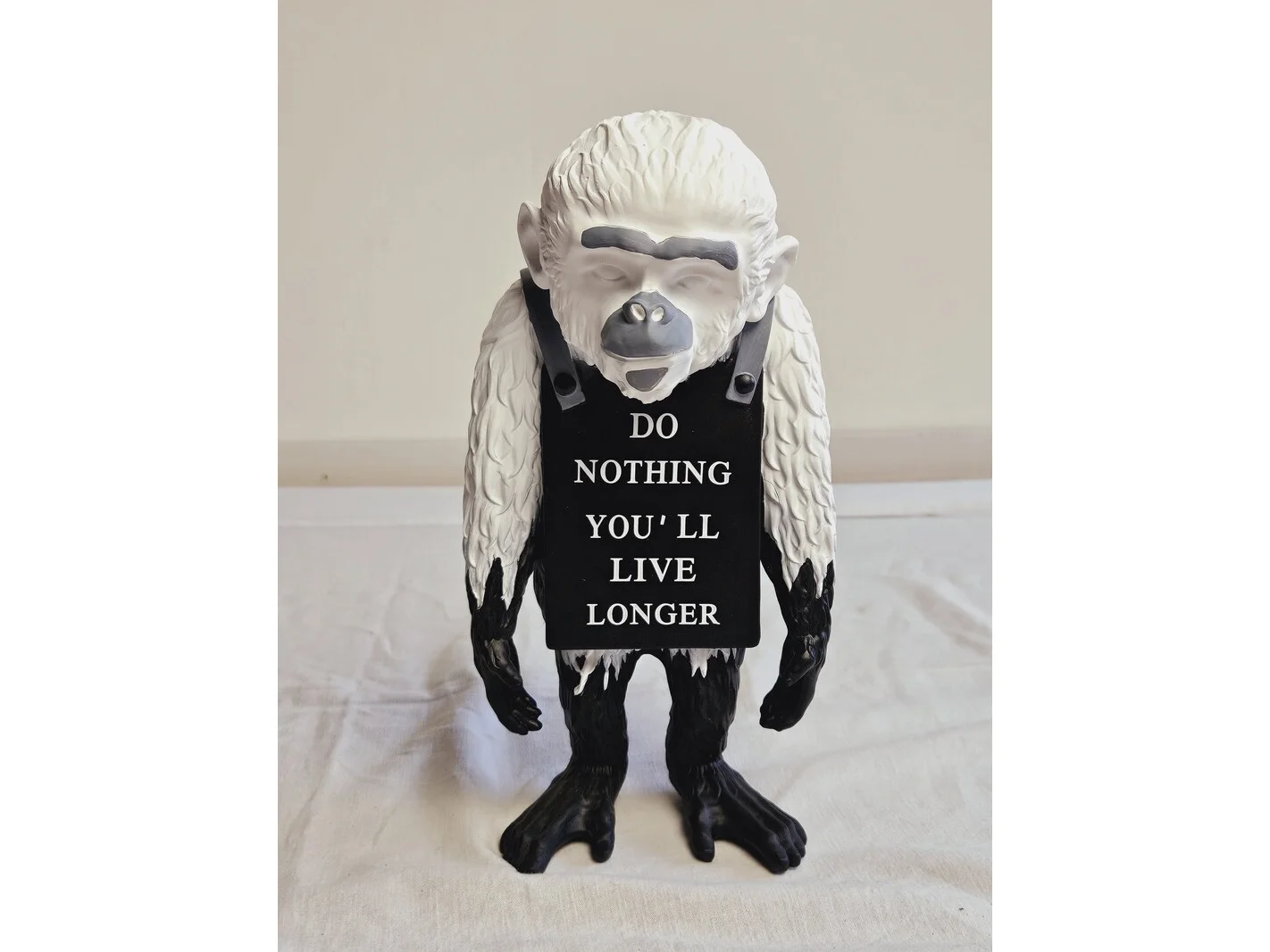 Product: Banksy fanart sculptuur - Banksy ape Afmeting: XL 34cm x 18cm x 15cm Conditie: Gebruikt Specificaties: Banksy fanart reproductie van het welbekende aapje van Banksy.