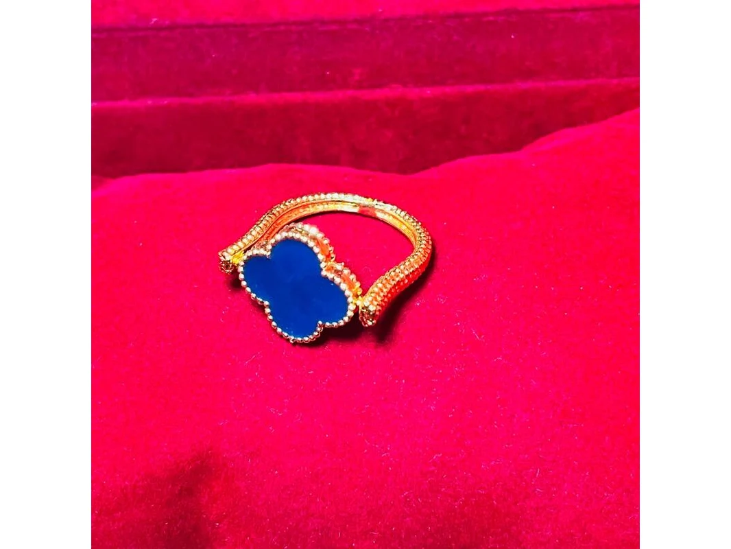 Product: Klassieke Alhambra model dames ring Conditie: Gebruikt Specificaties: Goudkleurig staal met steen. In klassiek Alhambra model.