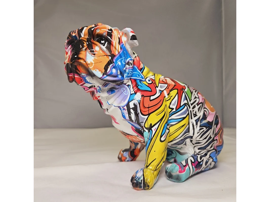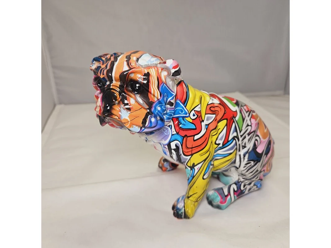 Product: Bulldog sculptuur - Neon Grafitti dog Afmeting: 17cm x 20cm Conditie: Nieuw Specificaties: Bulldog sculptuur - Neon Grafitti dog