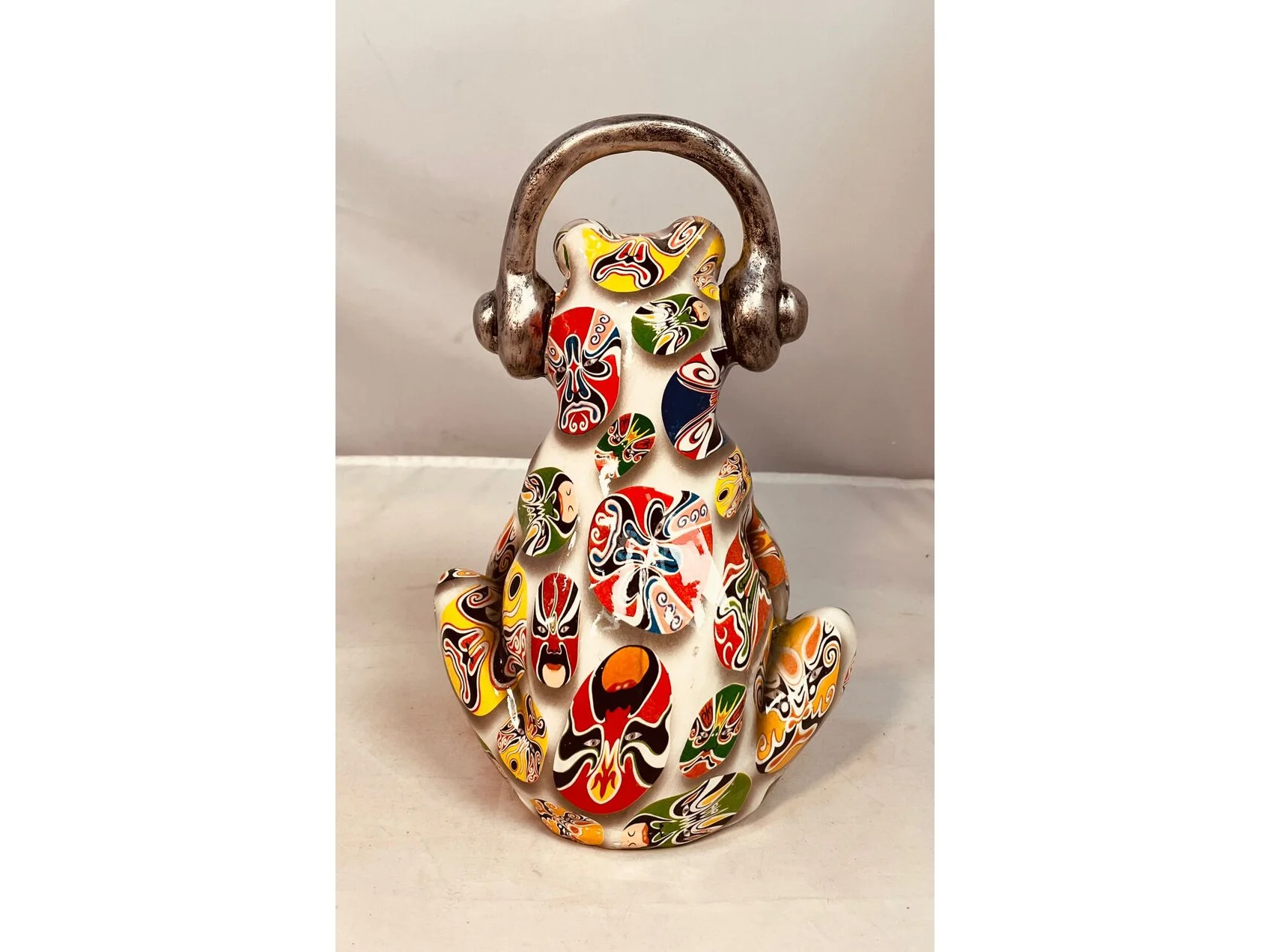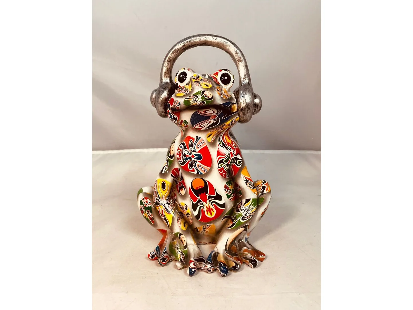 Product: Gedecoreerd kikker sculptuur Afmeting: 27cm x 17cm x 12cm Conditie: Nieuw Specificaties: Gedecoreerd kikker sculptuur