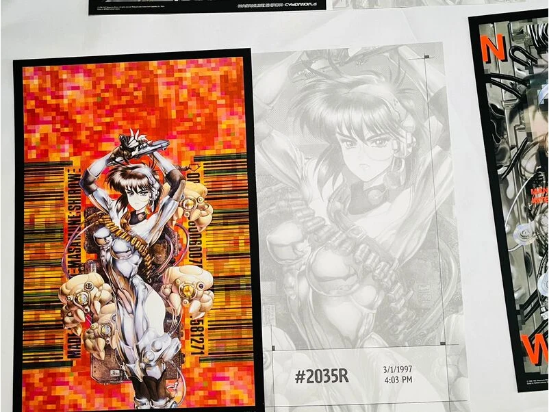 Product: Manga Masume Shirow - Lithografische kunstwerken Conditie: Nieuw Specificaties: Vintage Manga (Ghost in a shell 1995) - 1st edition offset lithografische kunstwerken. 6 meesterwerken van Manga artiest Masume Shirow, inclusief preview bladen.