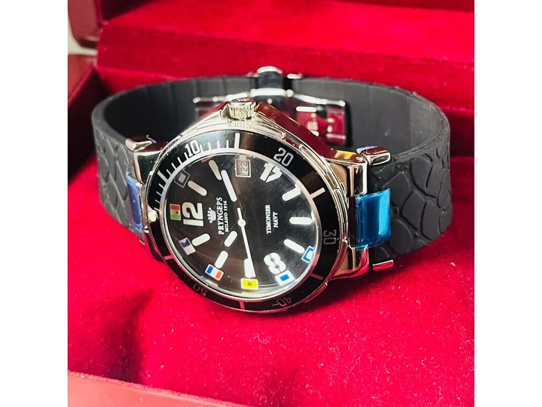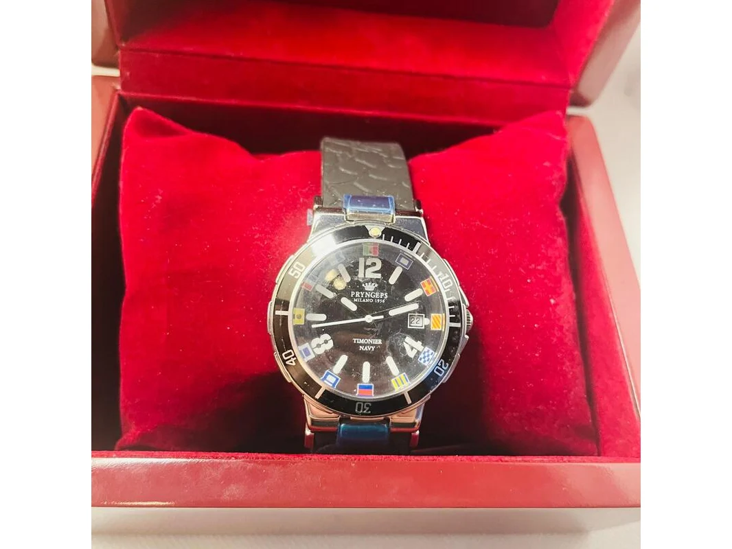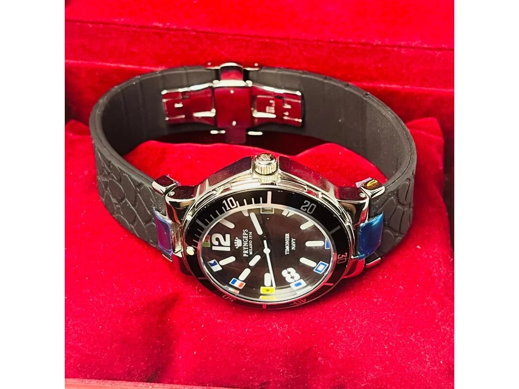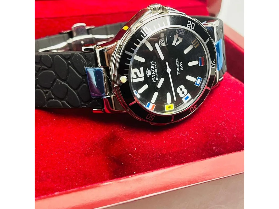 Product: Pryngeps Timonier Navy herenhorloge Afmeting: 40mm Specificaties: Nieuw uit oude juweliersvoorraad.