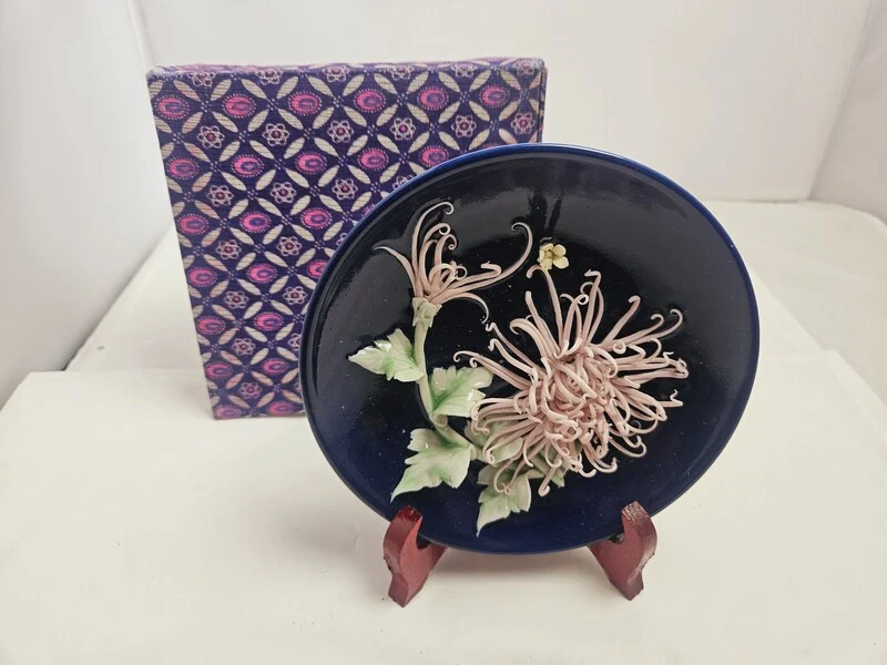 Antiek japans sierbord kunstwerk inclusief houten stand