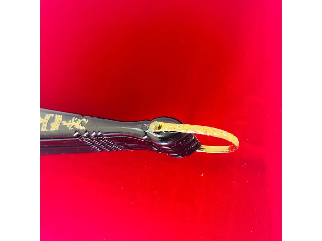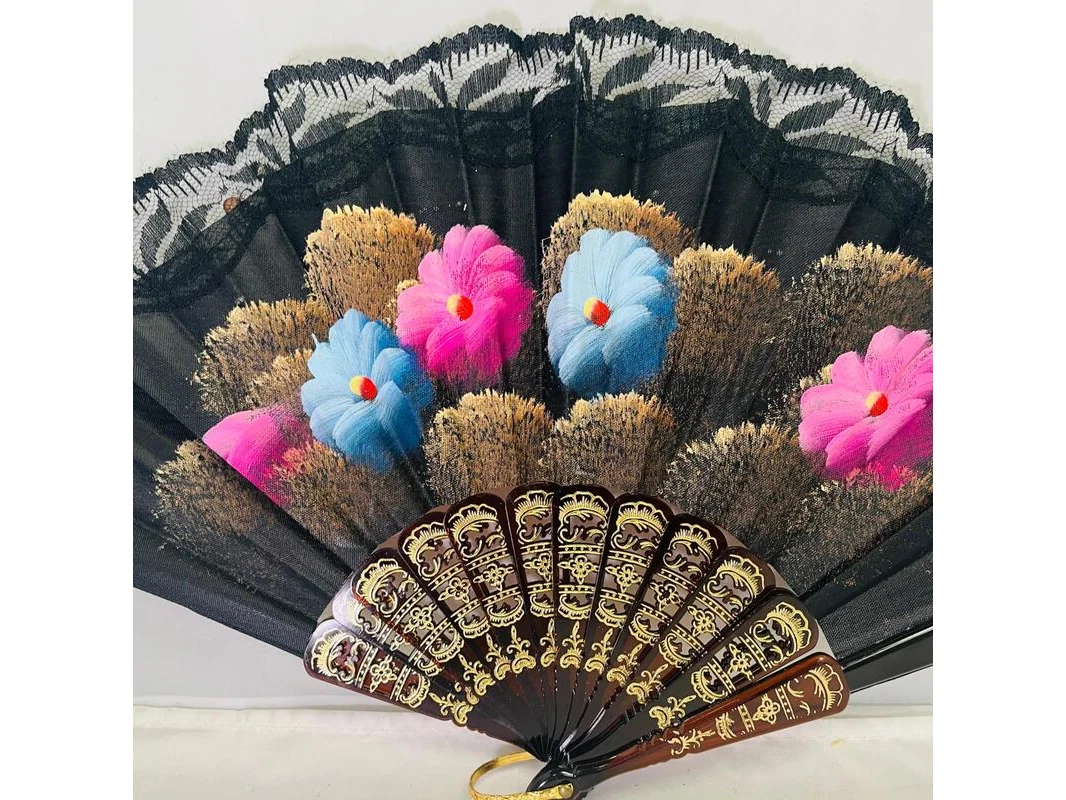 Antieke waaier - black flowers - bakeliet handvat - mint conditie