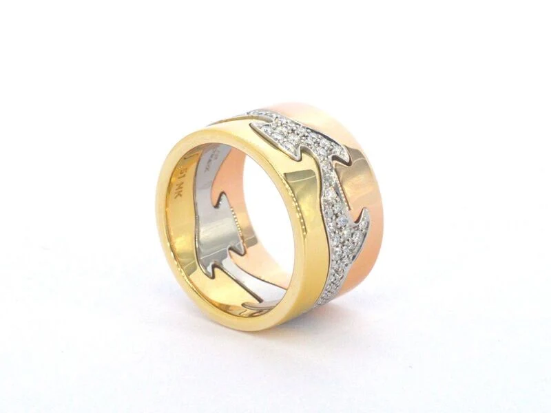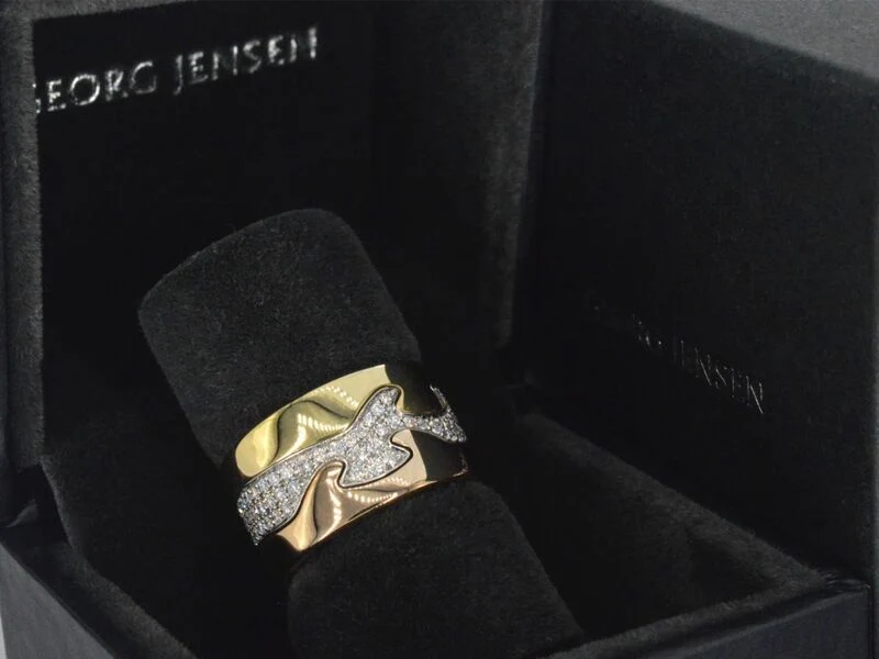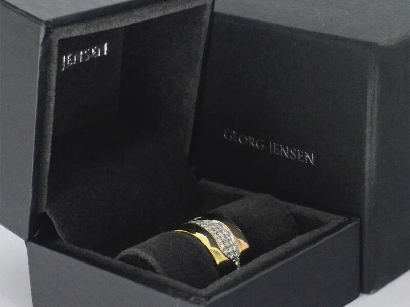 Product: Gouden George Jensen FUSION 3pcs ring met diamanten Specificaties: Diamant: Natuurlijk Slijpvorm: Briljant geslepen Gewicht (carat): 0.63 carat Kleur: F Zuiverheid: VS Juweel: Ring Merk: George Jensen Model: FUSION 3 Ringen Gewicht: 14 gram Ringmaat (op maat gemaakt*): 51 (16.25 mm) Materiaal: 18K goud (750) Conditie: Zo goed als nieuw Verpakking: Luxe sieradendoos Toelichting: De kwaliteit is overgenomen van het rapport behorend bij item. De waardebepaling is een beoordeling van een gecertificeerde diamantair, gebaseerd op consumentenprijzen. Extra informatie: deze set bestaat uit 3 Ringen Consumentenprijs: € 14.400,-