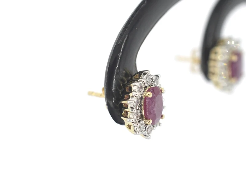 Product: Gouden oorbellen met natuurlijke diamanten en robijn Specificaties: Diamant: Natuurlijk Aantal: 20 stuks Slijpvorm: Briljant geslepen Gewicht (carat): 0.20 carat Kleur: F-G Zuiverheid: SI-P Slijpkwaliteit: Zeer mooi Edelsteen: Robijn Aantal: 2 stuks Slijpvorm: Ovaal geslepen Gewicht (carat): 1.50 carat Kleur: Robijn rood Zuiverheid: Met natuurlijke insluitsels (enhanced) Juweel: Oorbellen Gewicht: 2 gram Materiaal: 14k goud (585) Conditie: Nieuw Verpakking: Luxe sieradendoos Toelichting: De kwaliteit is overgenomen van het rapport behorend bij item. De waardebepaling is een beoordeling van een gecertificeerde diamantair, gebaseerd op consumentenprijzen. Consumentenprijs: € 2.188,-