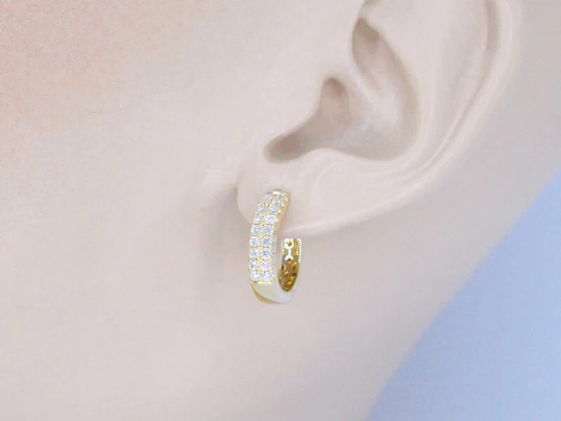 Product: Gouden creolen met twee rijen diamanten Specificaties: Diamant: Natuurlijk Aantal: 36 stuks Slijpvorm: Briljant geslepen Gewicht (carat): 0.60 carat Kleur: F-G Zuiverheid: VS Slijpkwaliteit: Zeer mooi Juweel: Oorbellen Gewicht: 5.2 gram Afmetingen/lengte: 16 x 3 mm Materiaal: 18K goud (750) Conditie: Nieuw Verpakking: Luxe sieradendoos Toelichting: De kwaliteit is overgenomen van het rapport behorend bij item. De waardebepaling is een beoordeling van een gecertificeerde diamantair, gebaseerd op consumentenprijzen. Consumentenprijs: € 6.195,-