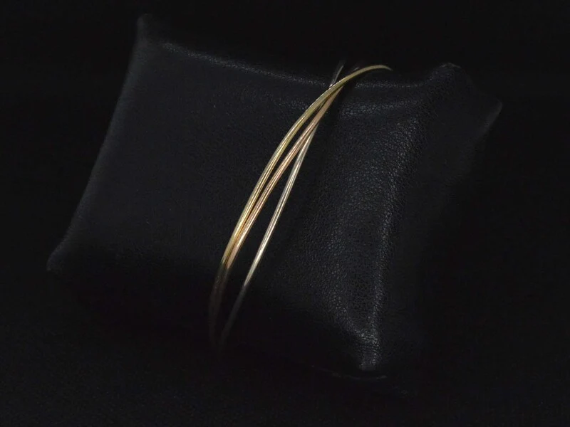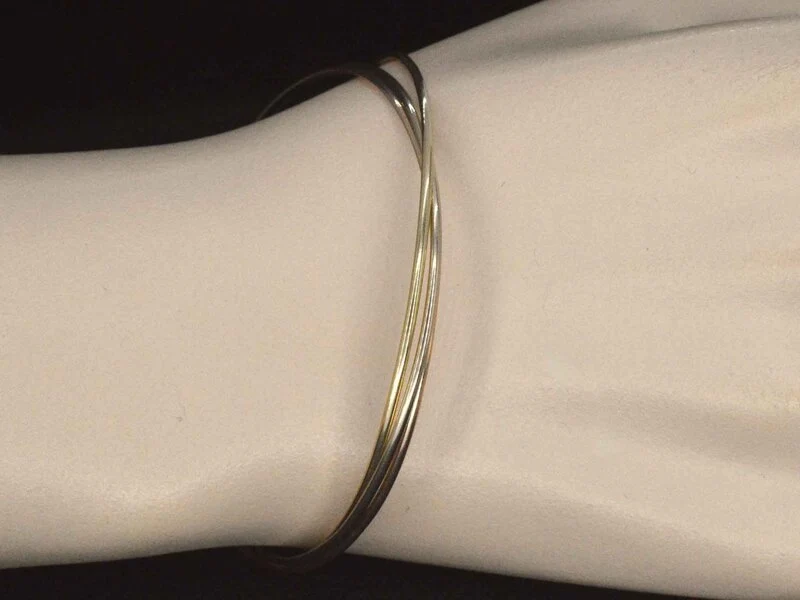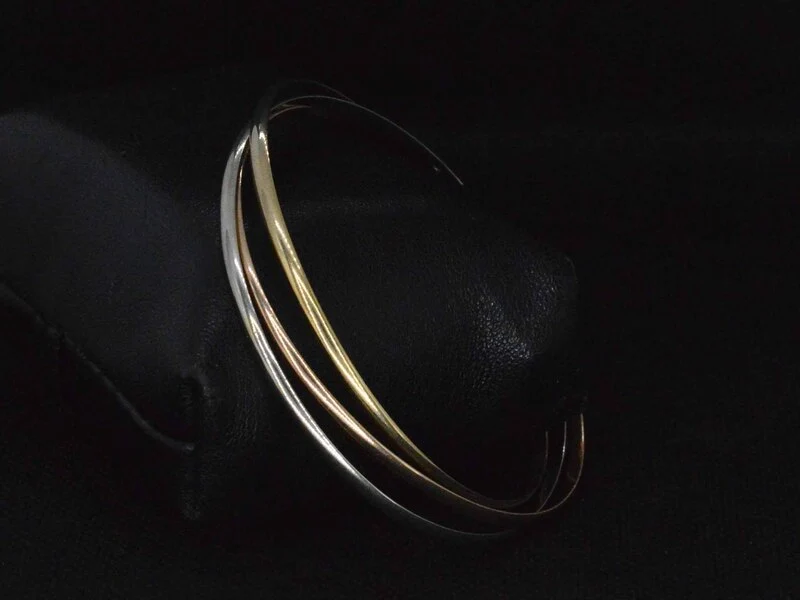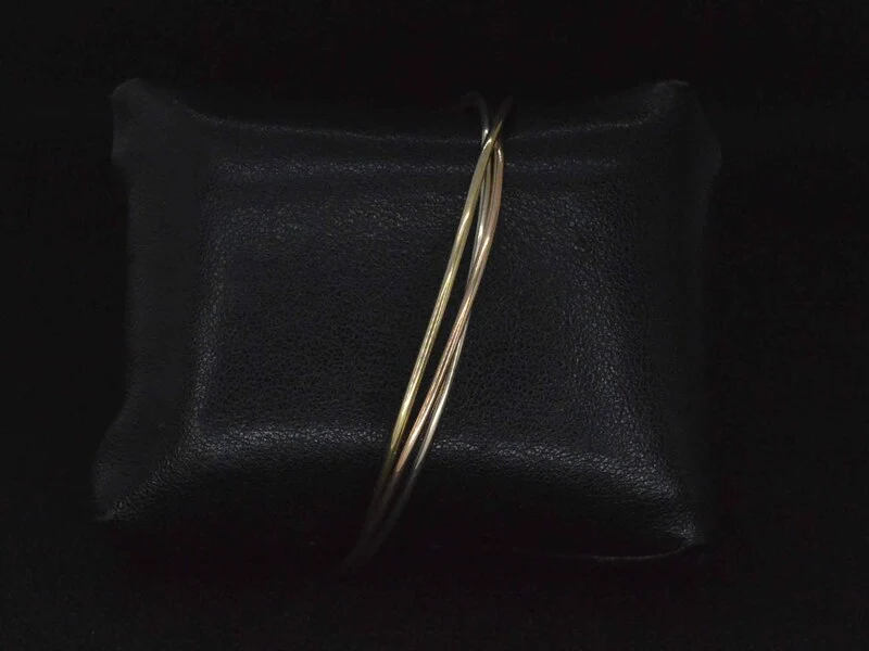 Product: Armband met drie kleuren goud Specificaties: Juweel: Armband Gewicht: 9.6 gram Afmetingen/lengte: Diameter: 64 mm Materiaal: 14 karaat goud (tricolour) Conditie: Vintage Verpakking: Luxe sieradendoos Toelichting: De kwaliteit is overgenomen van het rapport behorend bij item. De waardebepaling is een beoordeling van een gecertificeerde diamantair, gebaseerd op consumentenprijzen. Consumentenprijs: € 6.930,-