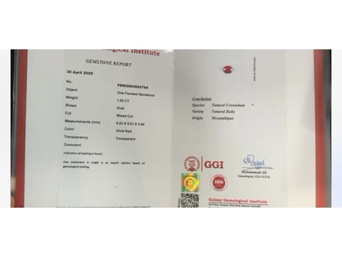 Product: Robijn - 1.03 carat natuurlijke robijn van hoge kwaliteit Specificaties: Edelsteen: Robijn Aantal: 1 stuk Slijpvorm: Ovaal geslepen Gewicht (carat): 1.03 carat Kleur: Duivenbloed rood Zuiverheid: Met natuurlijke insluitsels Certificaat: GGI Certificaat nummer: PEW2504520764 Conditie: Nieuw Verpakking: Edelsteendoos Toelichting: De kwaliteit is overgenomen van het rapport behorend bij item. De waardebepaling is een beoordeling van een gecertificeerde diamantair, gebaseerd op consumentenprijzen. Consumentenprijs: € 4.225,-