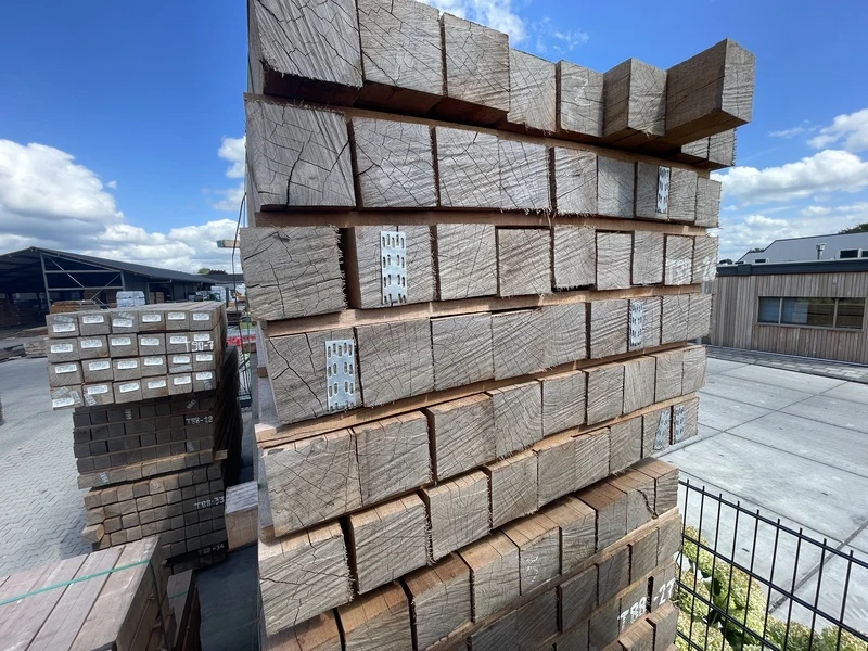Ca. 27x guyana teak balken fijnbezaagd, 100x100mm, lengte 300cm