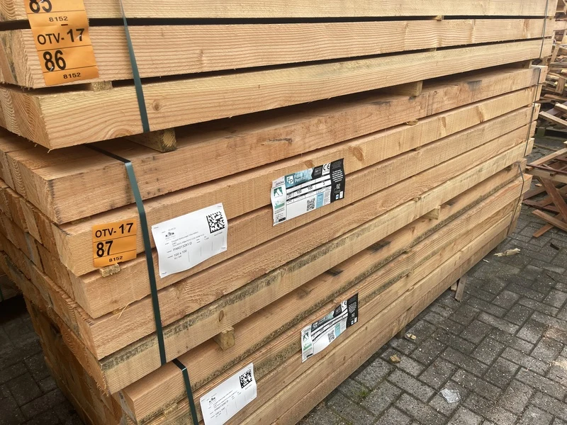 Ca. 50x douglas balken fijnbezaagd, 100x100mm, lengte 300cm