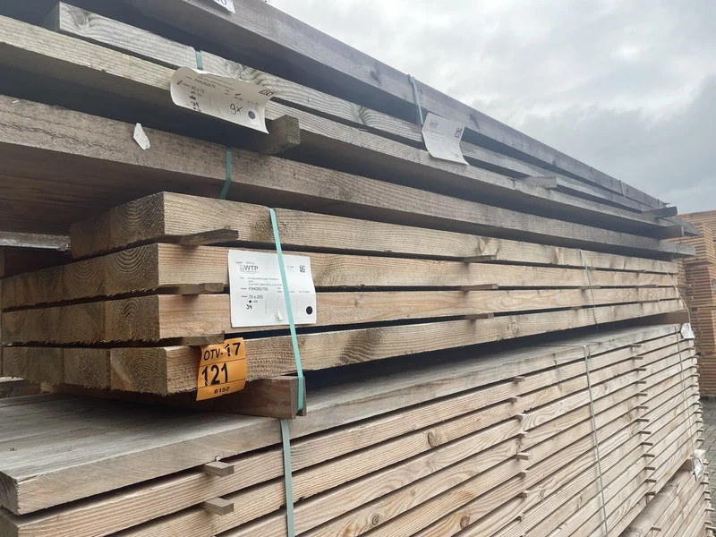 Ca. 18x douglas balken fijnbezaagd, 75x200mm, lengte 400cm