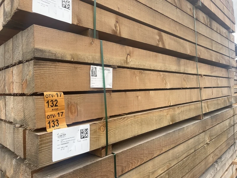 Product: Douglas balken fijnbezaagd Materiaal: Douglas Afmeting: 150x150mm, lengte 400cm Conditie: nieuw
