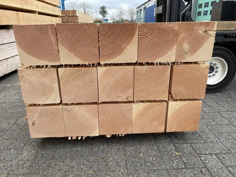 Product: Douglas balken fijnbezaagd Materiaal: Douglas Afmeting: 200x200mm, lengte 400cm Conditie: nieuw