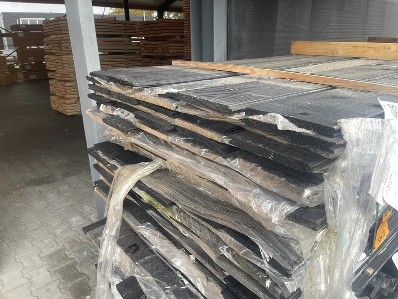 Product: Veer en groef zwart gecoat Materiaal: Douglas Afmeting: 18x185mm, lengte 500cm Conditie: nieuw