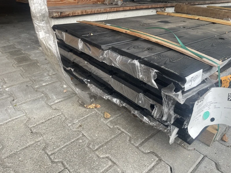 Ca. 50x wisselsponning/halfhoutsrabat zwart gecoat, 18x190mm, lengte 500cm