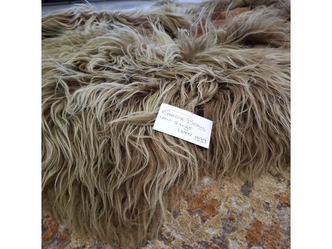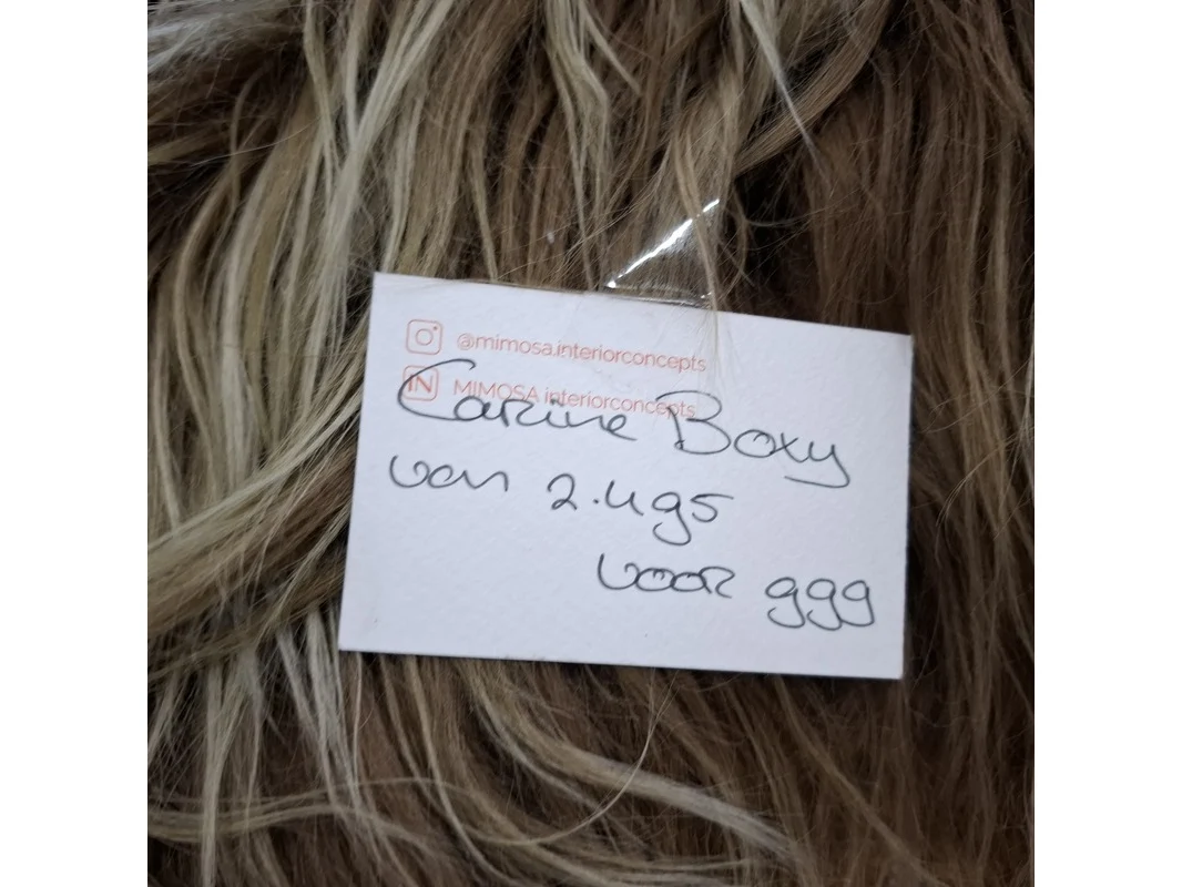 Merk: Carine Boxy Product: Vloerkleed Materiaal: Schaap/Koe Afmeting: ca. 200x150 Specificaties: Betreft het kleed bovenop, het vloerkleed er onder is te vinden bij kavel 5