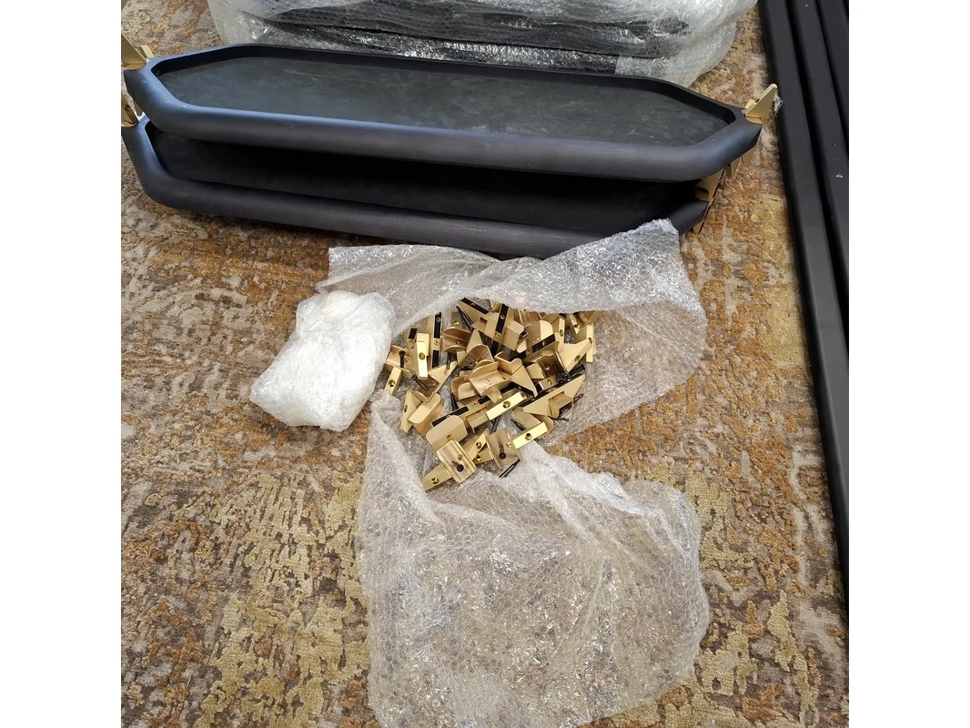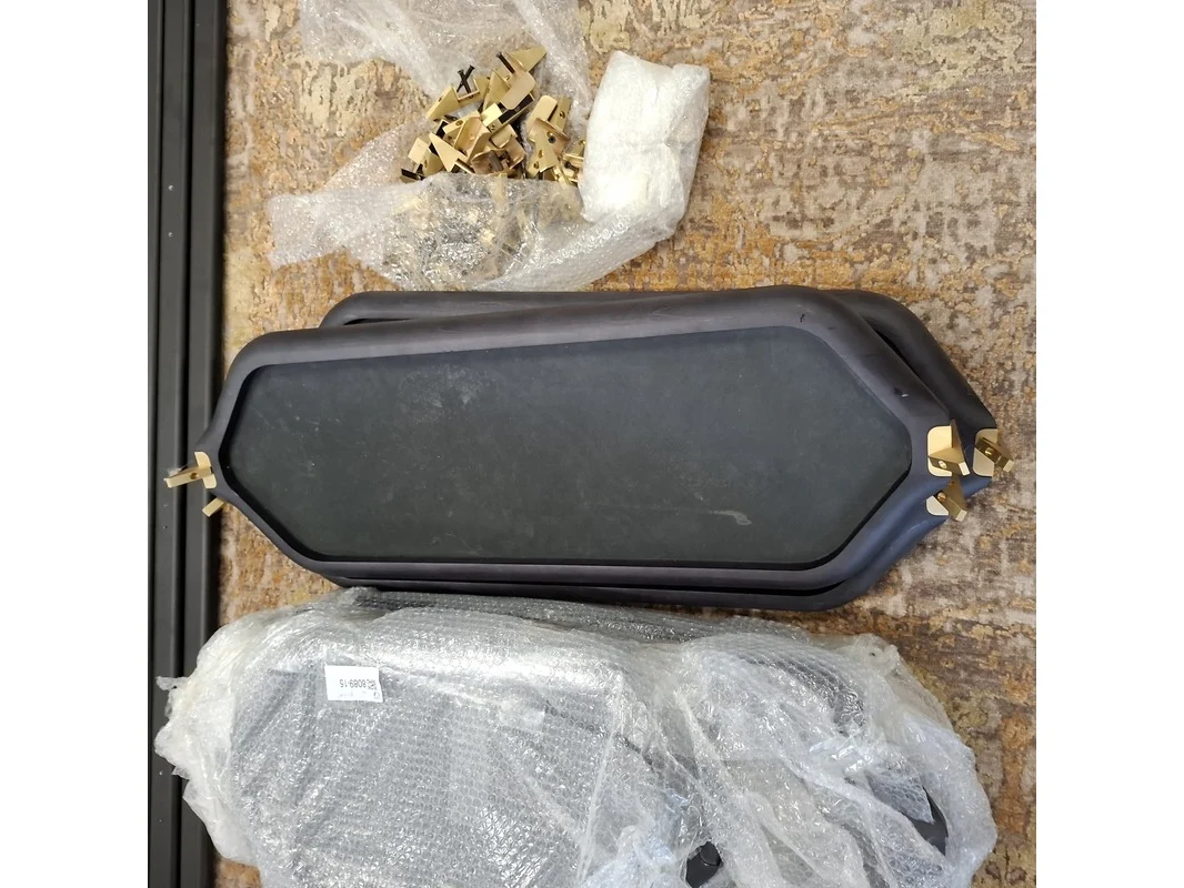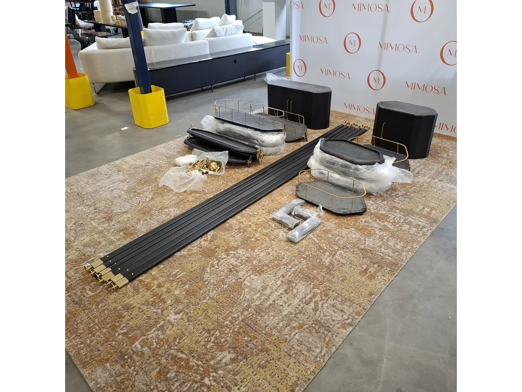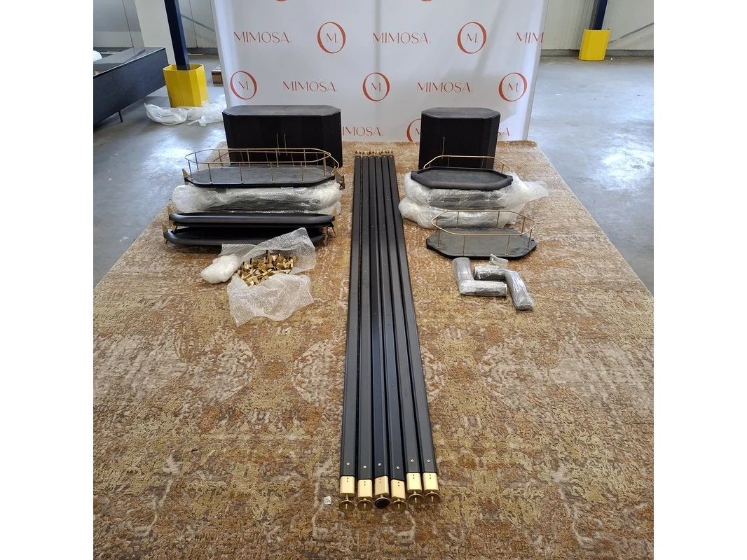 Merk: Baxter Product: Design wandkast Specificaties: gedemonteerd, compleetheid onbekend, diverse lichte beschadigingen, modulair systeem o.a. 6x staander hoogte ca. 310cm kastje breedte ca. 85 en 55cm 2x muursteun diverse plateau's