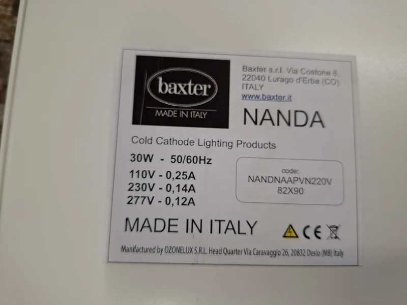 Merk: Baxter Product: Design wandlamp Afmeting: hoogte ca. 90cm Specificaties: 230V, 30W compleetheid onbekend