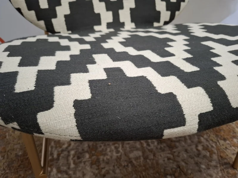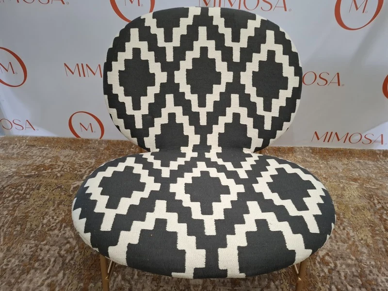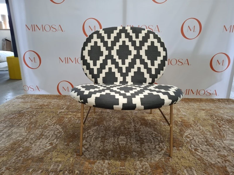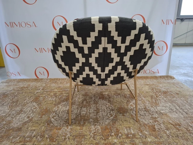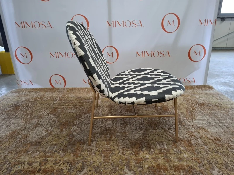 Design loungestoel, tacchini , kelly, zwart wit gestoffeerd, goudkleurige poten
