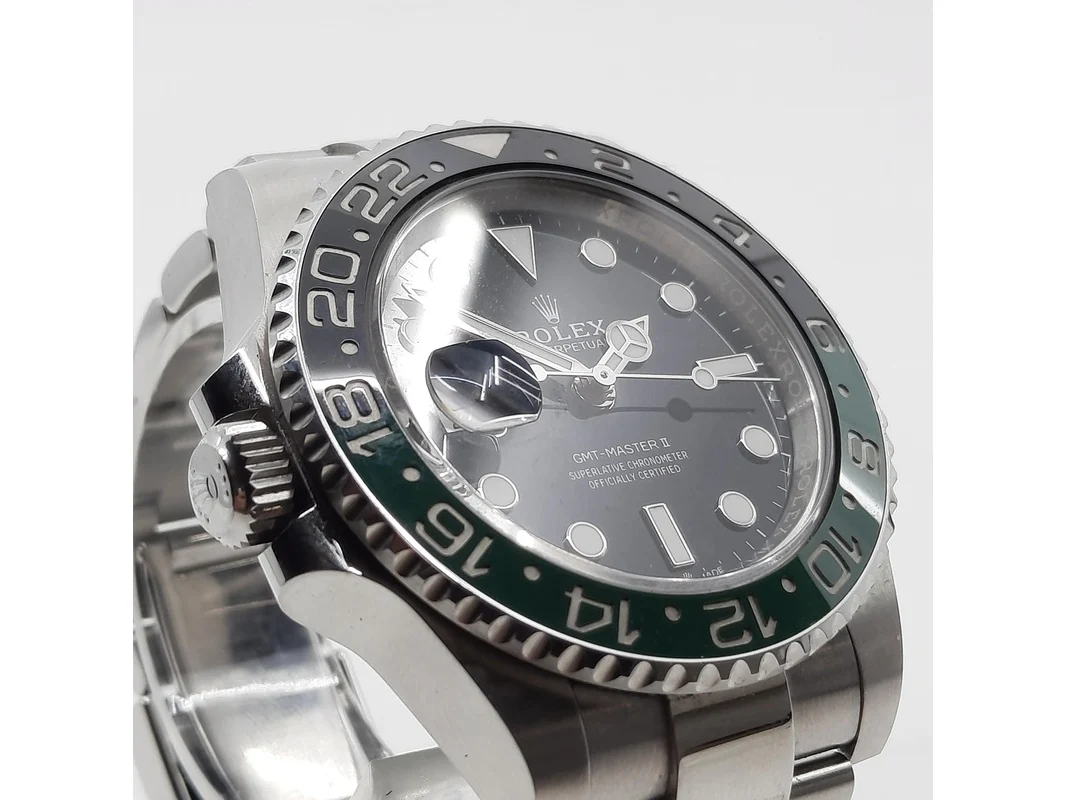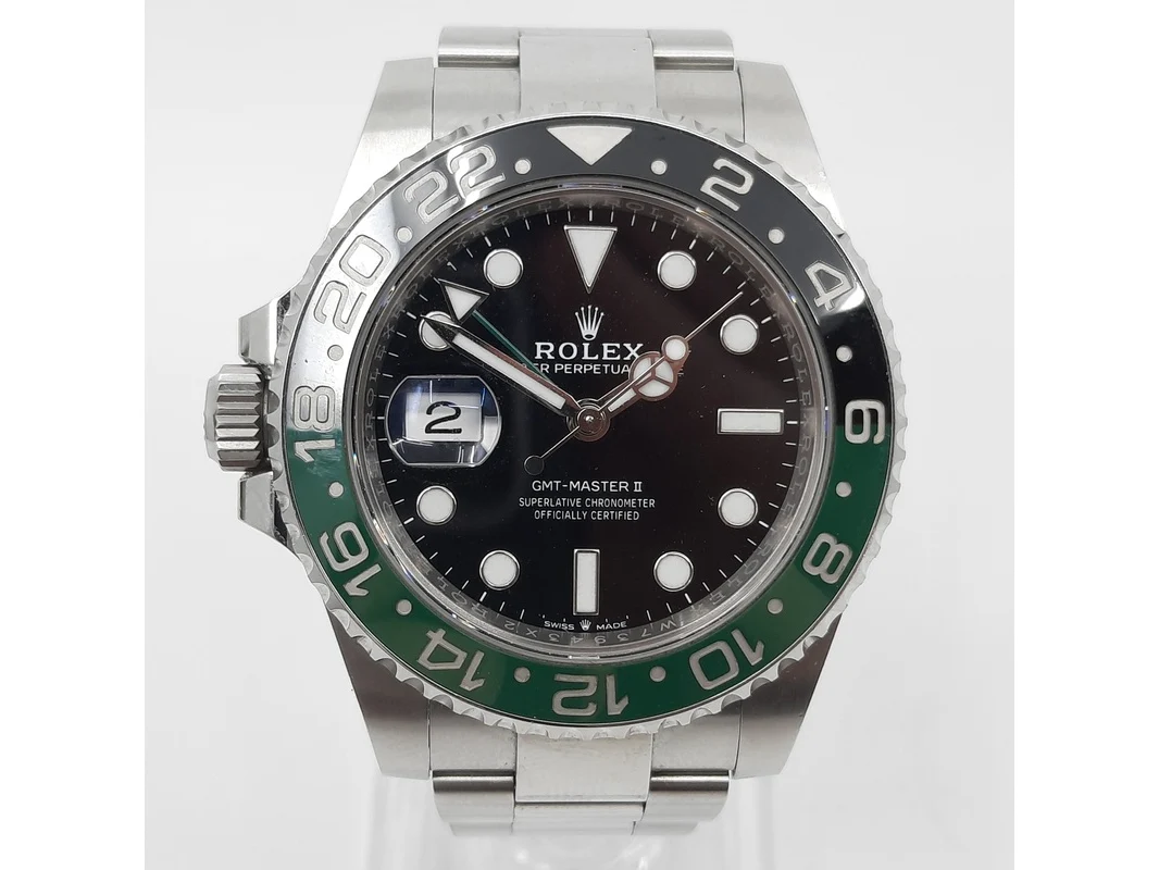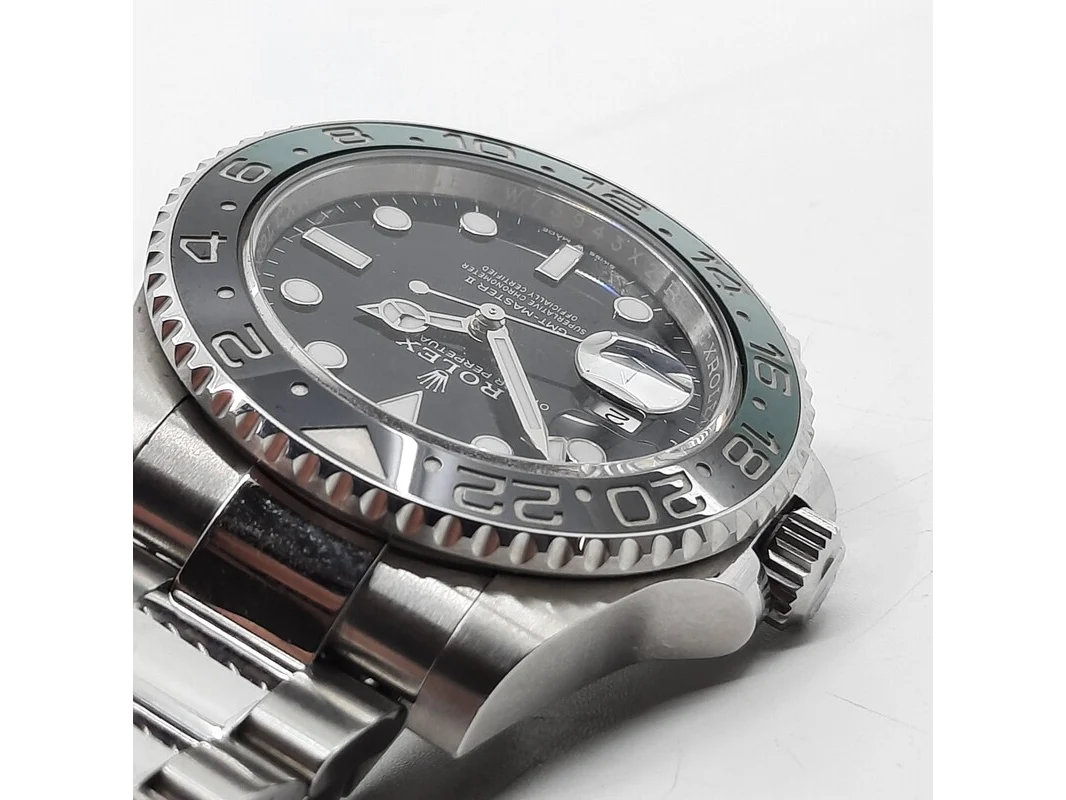 Merk: Rolex Product: Heren polshorloge Conditie: gebruikt Specificaties: Een stalen heren polshorloge, Rolex GMT Master II 126720. Met zwarte wijzerplaat, groen/zwarte bezel, datumaanduiding en stalen band met vouwsluiting. Kast nummer: W73943X2. Geen doos en geen certificaat.