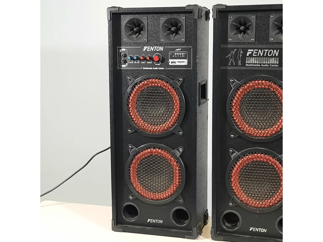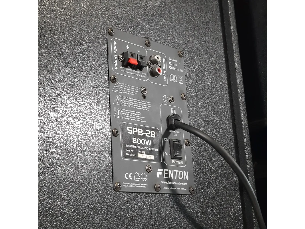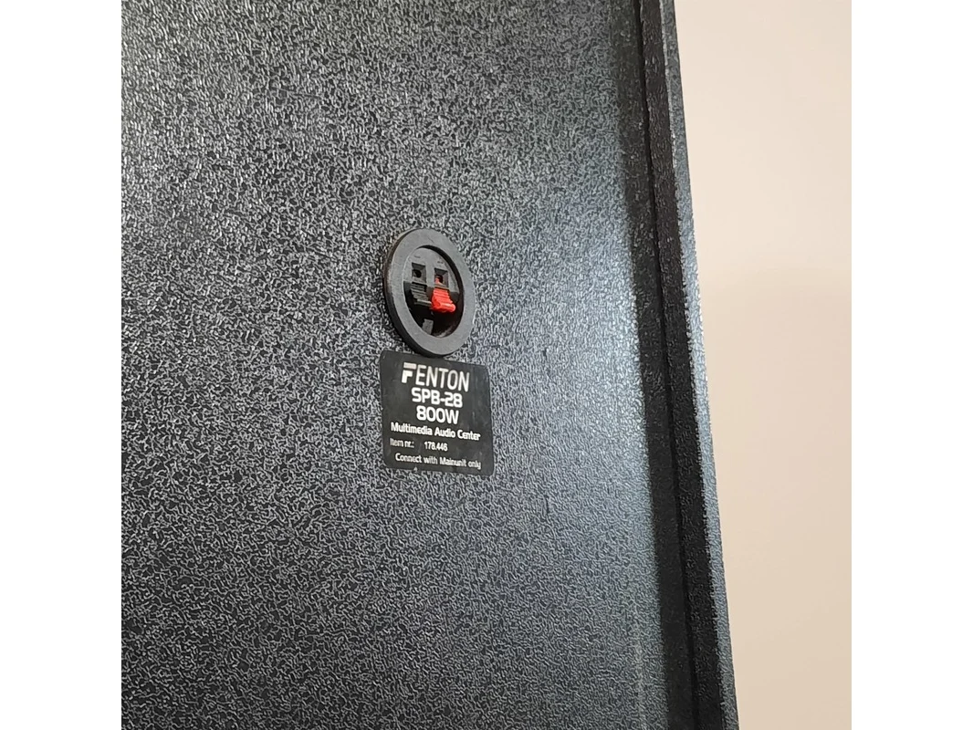 Merk: Fenton Product: Luidspreker Afmeting: hxbxd ca. 77x30x20 cm BouwJaar: 2019 Conditie: gebruikt Specificaties: 230V 50Hz 1.3A 800W Inclusief netsnoer.