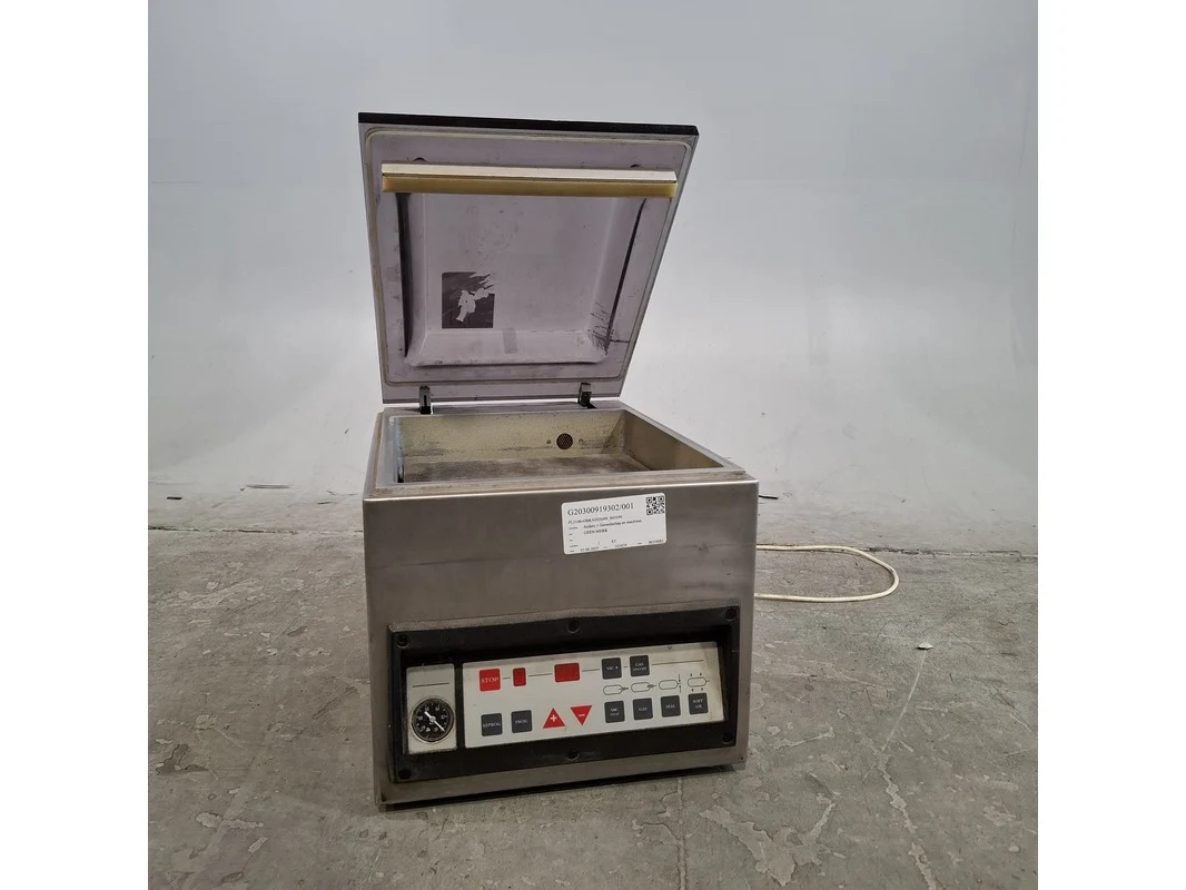 Product: Vacuümmachine Afmeting: hxbxd ca. 40x38x51 cm Conditie: gebruikt Specificaties: 230V 50hz