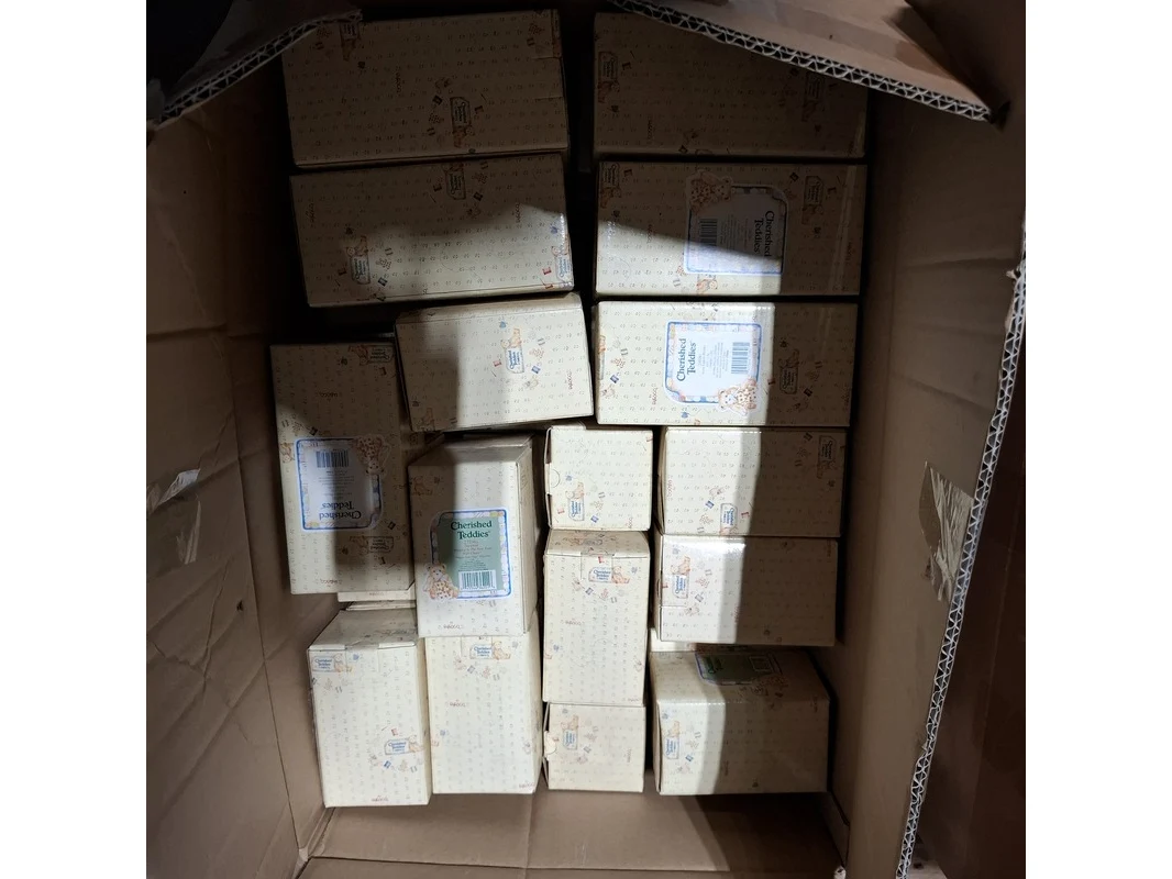 Merk: o.a Cherished Teddy's Product: Partij diverse beeldjes Afmeting: Diverse maten Conditie: gebruikt Specificaties: Bestaande uit o.a. Nr 240281: Love Letters Blocks Nr 272361: "Ringing In The New Year With Cheer" Newton Nr 242667: Jack & Jill Dinner Set Exclusief draadkooi en pallet.