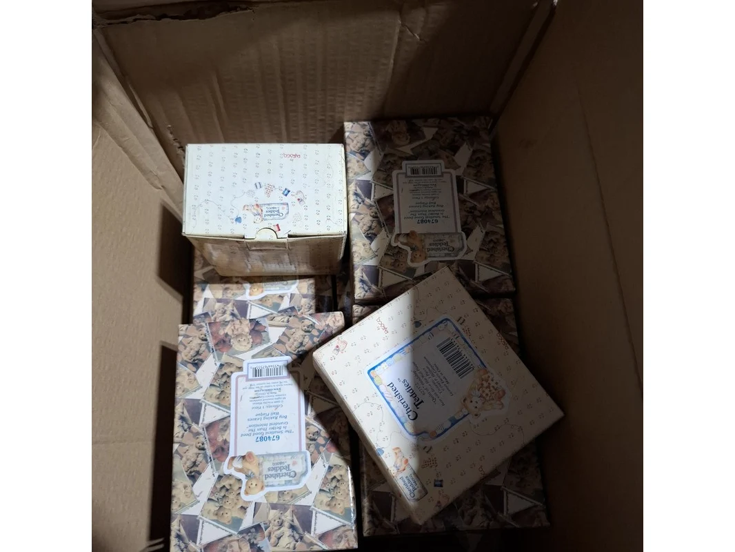 Merk: o.a Cherished Teddy's Product: Partij diverse beeldjes Afmeting: Diverse maten Conditie: gebruikt Specificaties: Bestaande uit o.a. Nr 674087: "The smallest good deed is better than the grandest intention" Nr 644358: "It's not the size of the friend but the size of their heart Nr 627373: "Quilts of friendship" Exclusief draadkooi en pallet.