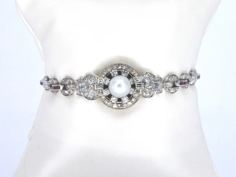 Product: Art-Deco armband met goud en platina, en natuurlijke diamanten en robijnen Specificaties: Diamant: Natuurlijk Aantal: 8 stuks Slijpvorm: Briljant geslepen Gewicht (carat): 0.40 carat Kleur: F-G Zuiverheid: VS Slijpkwaliteit: Uit de tijd geslepen Diamant (secundair): Natuurlijk Aantal diamanten: 9 stuks Slijpvorm: Carré geslepen Gewicht (carat): 1.50 carat Kleur: E Zuiverheid: VVS Slijpkwaliteit: Zeer mooi Diamant (secundair): Natuurlijk Slijpvorm: Swiss en baguette geslepen Gewicht (carat): 2.00 carat Kleur: F-G Zuiverheid: VS Edelsteen: Robijn Aantal: 24 stuks Slijpvorm: Gefacetteerd Gewicht (carat): 0.80 carat Kleur: Robijn rood - roze Zuiverheid: Met natuurlijke insluitsels Juweel: Armband Gewicht: 23.8 gram Afmetingen/lengte: 17.5 cm Materiaal: Goud en platina Conditie: Vintage Verpakking: Luxe sieradendoos Toelichting: De kwaliteit is overgenomen van het rapport behorend bij item. De waardebepaling is een beoordeling van een gecertificeerde diamantair, gebaseerd op consumentenprijzen. Consumentenprijs: € 28.000,-
