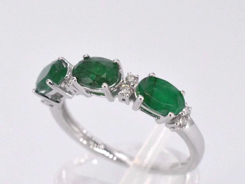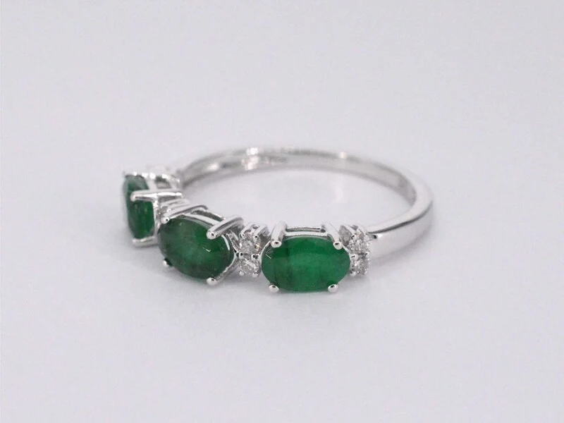 Product: Witgouden ring met diamanten en smaragd Specificaties: Diamant: Natuurlijk Slijpvorm: Briljant geslepen Gewicht (carat): 0.10 carat Kleur: F-G Zuiverheid: SI-P Slijpkwaliteit: Zeer mooi Edelsteen: Smaragd Slijpvorm: Ovaal geslepen Gewicht (carat): 1.50 carat Juweel: Ring Gewicht: 2.5 gram Ringmaat (op maat gemaakt*): 54 (17.25 mm) Materiaal: 14 karaat (585) Conditie: Nieuw Verpakking: Luxe sieradendoos Toelichting: De kwaliteit is overgenomen van het rapport behorend bij item. De waardebepaling is een beoordeling van een gecertificeerde diamantair, gebaseerd op consumentenprijzen. Consumentenprijs: € 1.733,-