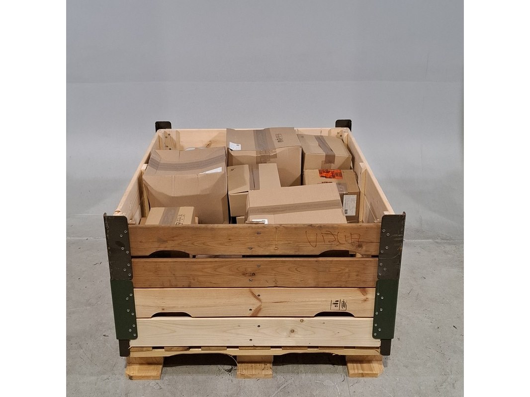 Product: Diverse onderdelen Specificaties: Bestaande uit o.a. flens bouten, touwtjes, metaal draad,moeren, etc Exclusief palletkist.